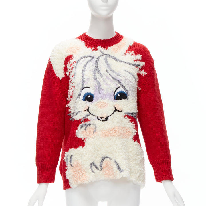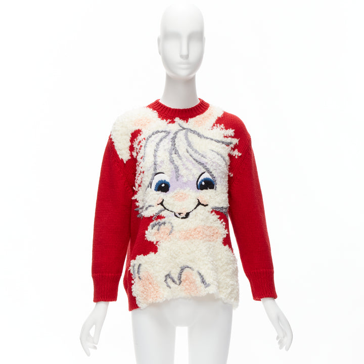 STELLA MCCARTNEY red wool cotton textured bunny sweater IT34 XXS
