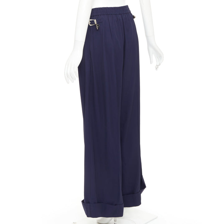 TOGA PULLA navy rayon western decorative buckles rolled hem wide pants IT38 XS