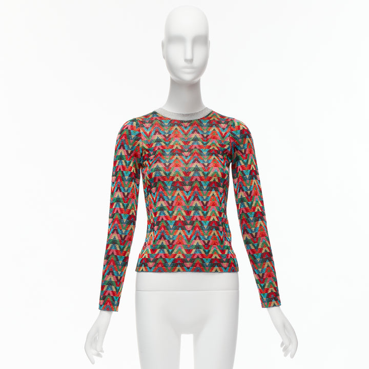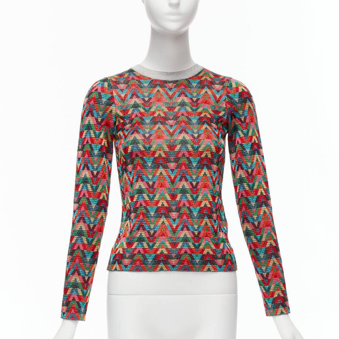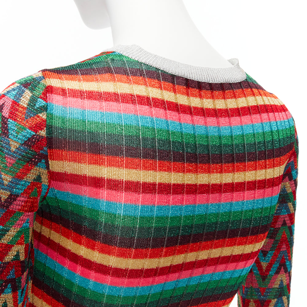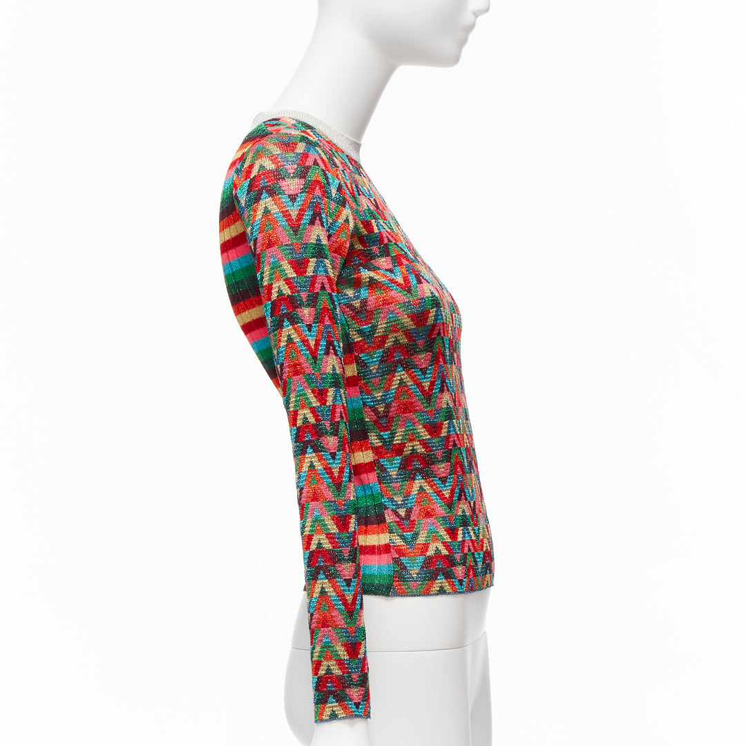 VALENTINO 2021 Optical VLOGO colorful lurex silver collar long sleeve sweater XS