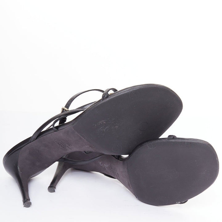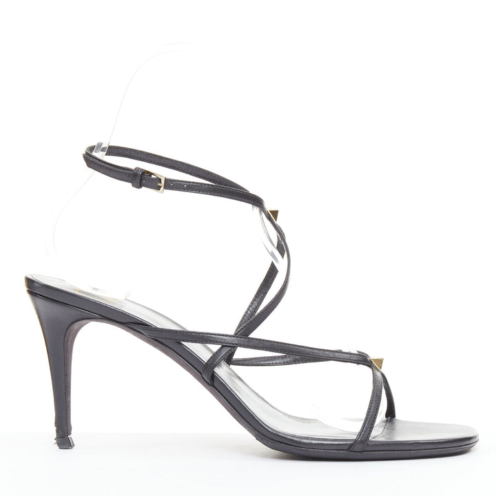VALENTINO Rockstud black leather gold simple studs strappy sandals EU39