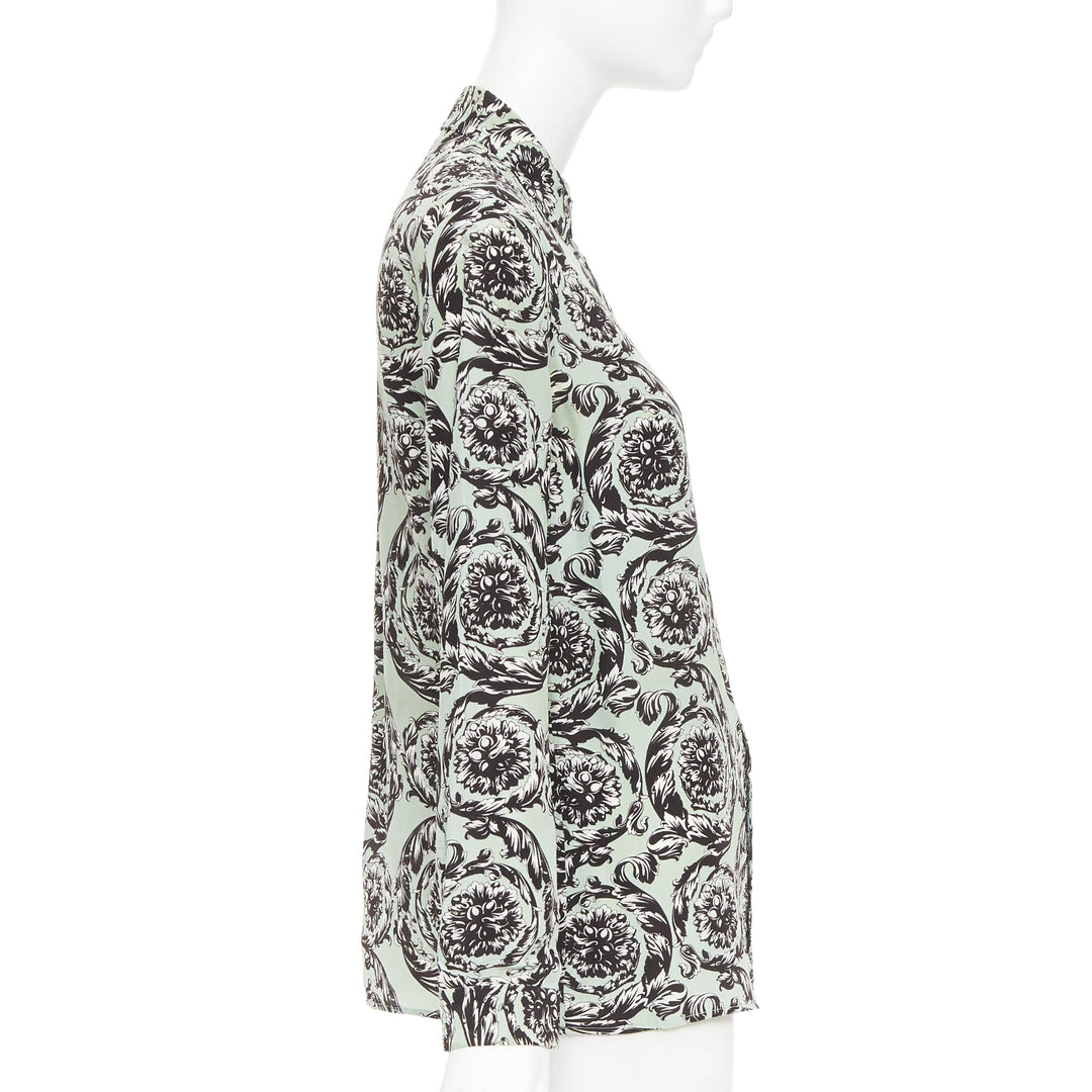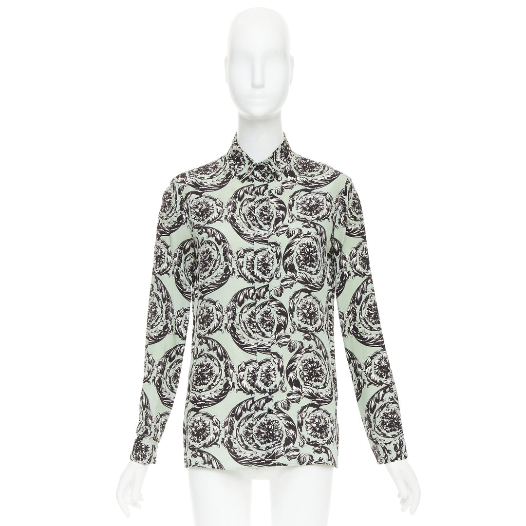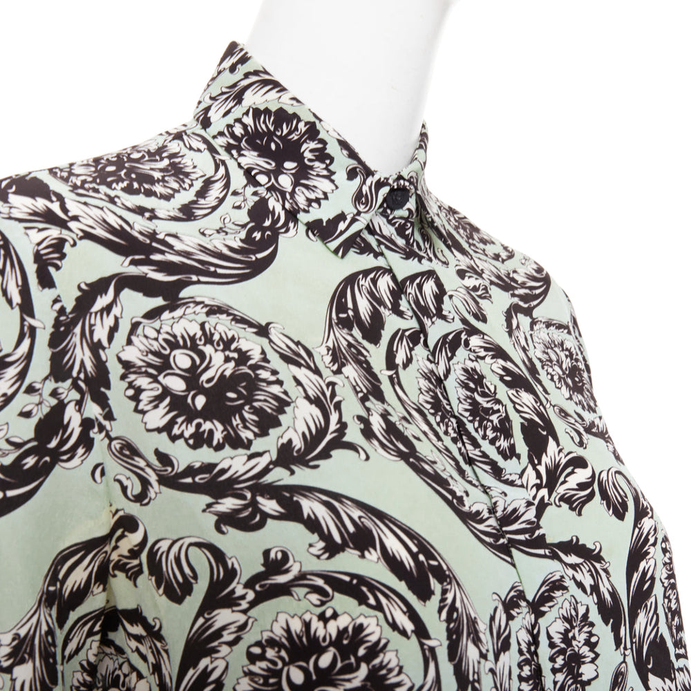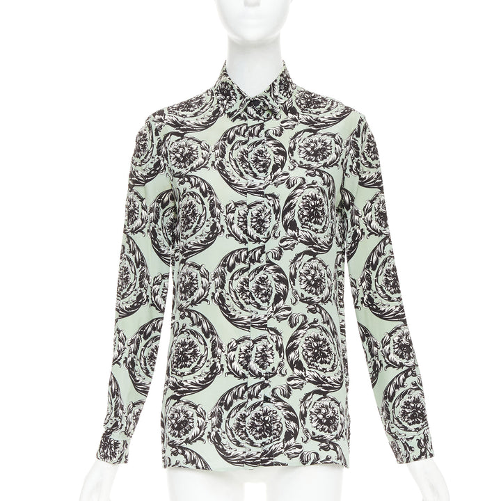 VERSACE 100% silk green black baroque floral print button up shirt IT38 XS