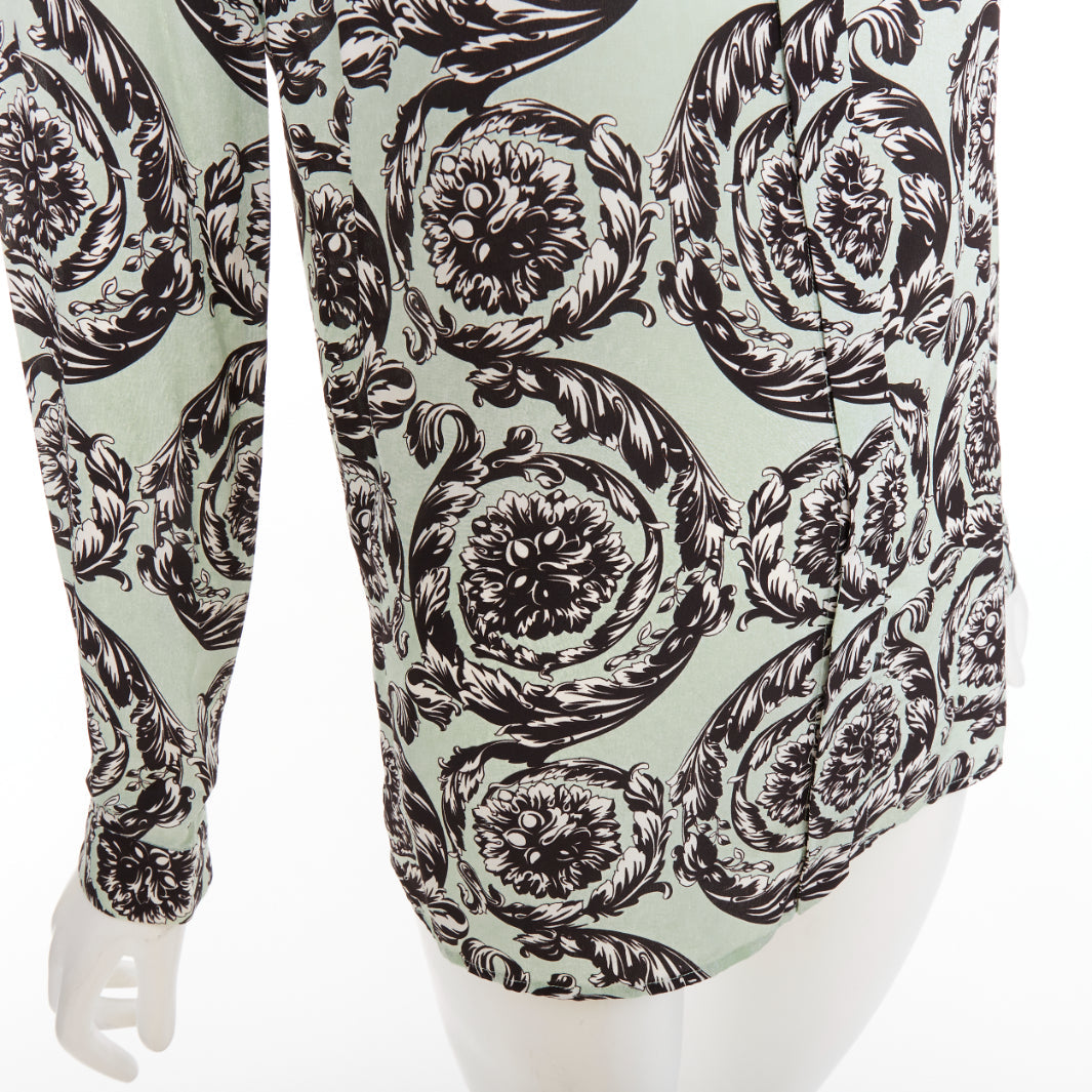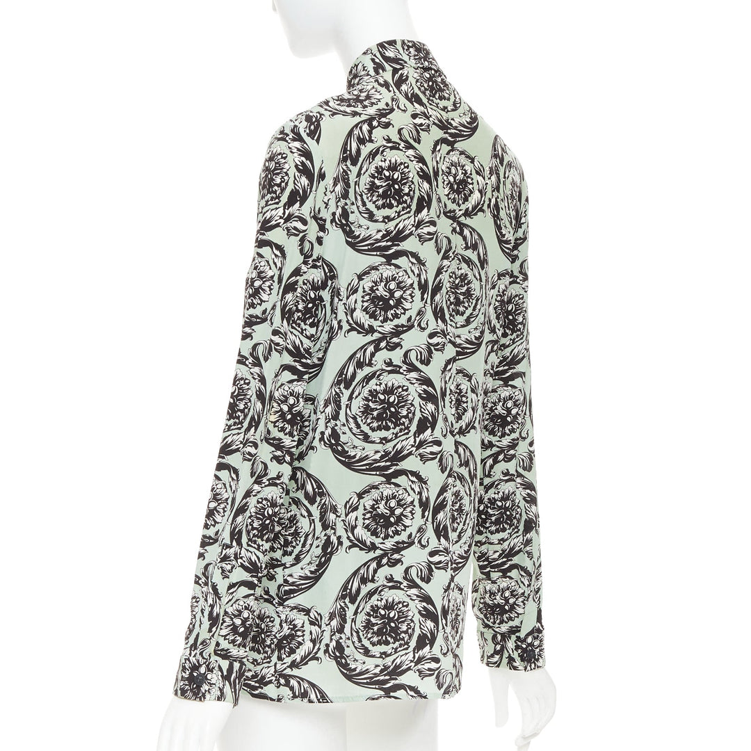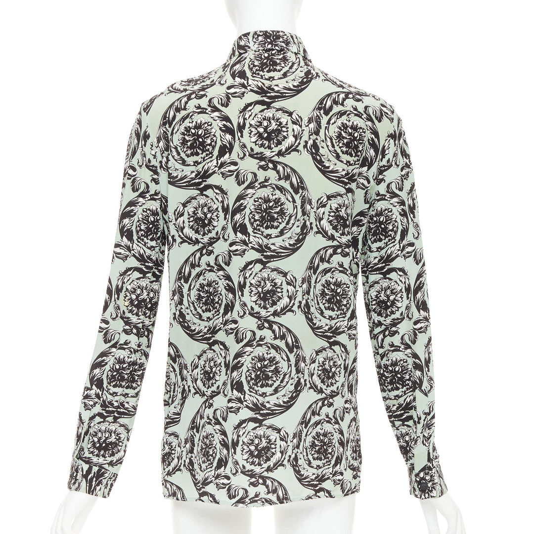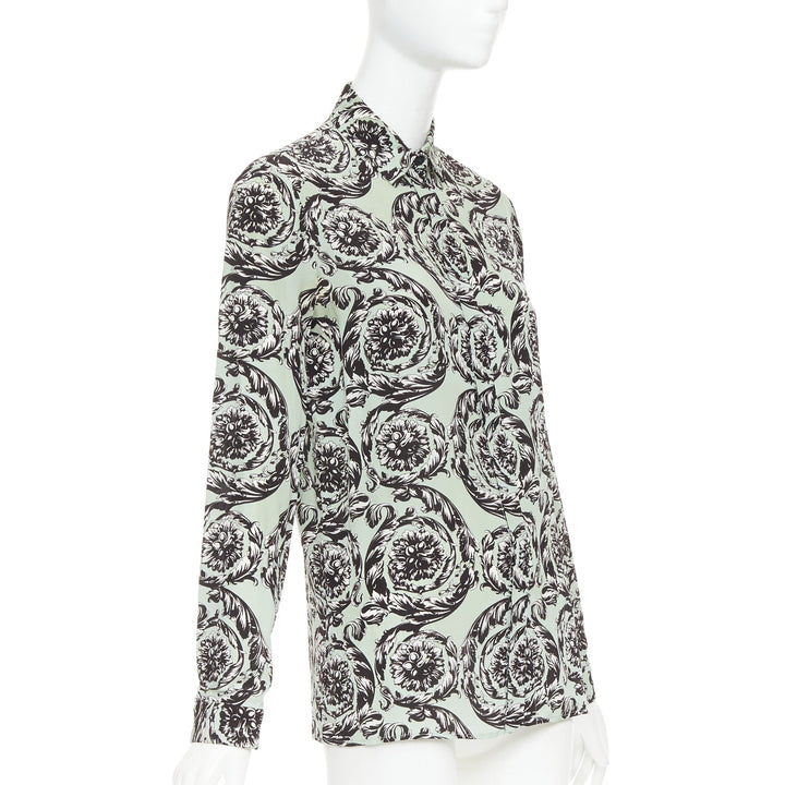 VERSACE 100% silk green black baroque floral print button up shirt IT38 XS