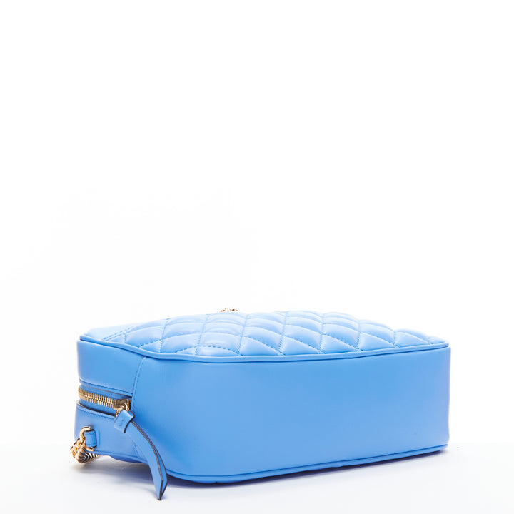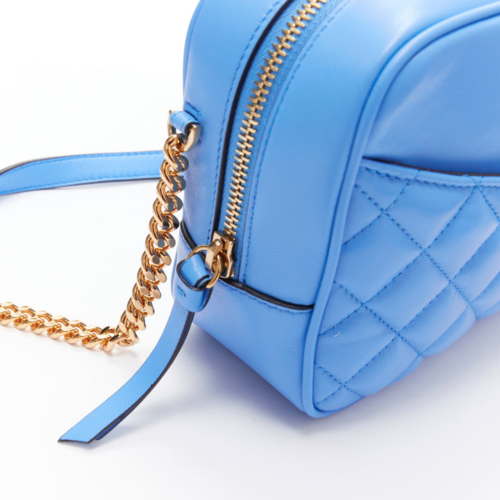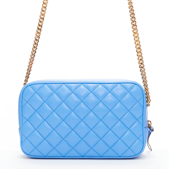 VERSACE blue lambskin leather quilted gold Medusa chain crossbody bag Medium