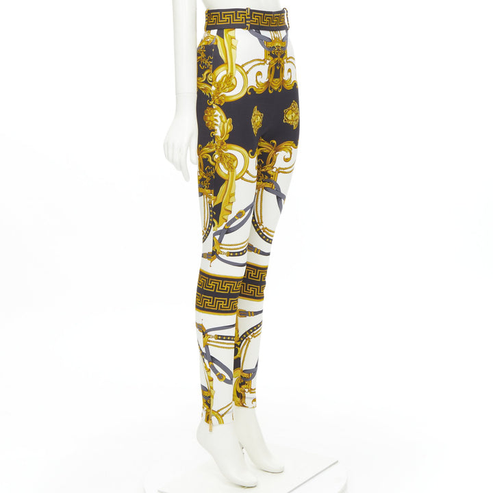 VERSACE Rodeo Barocco black gold baroque harness legging pants IT40 S