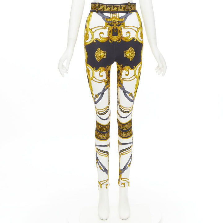 VERSACE Runway Rodeo Barocco black gold harness legging pants IT38 XS
