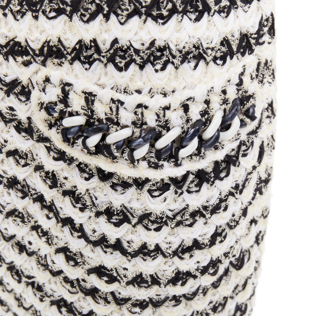 CHANEL 19P black white cotton tweed tweed chunky resin chain trim dress FR34 XS