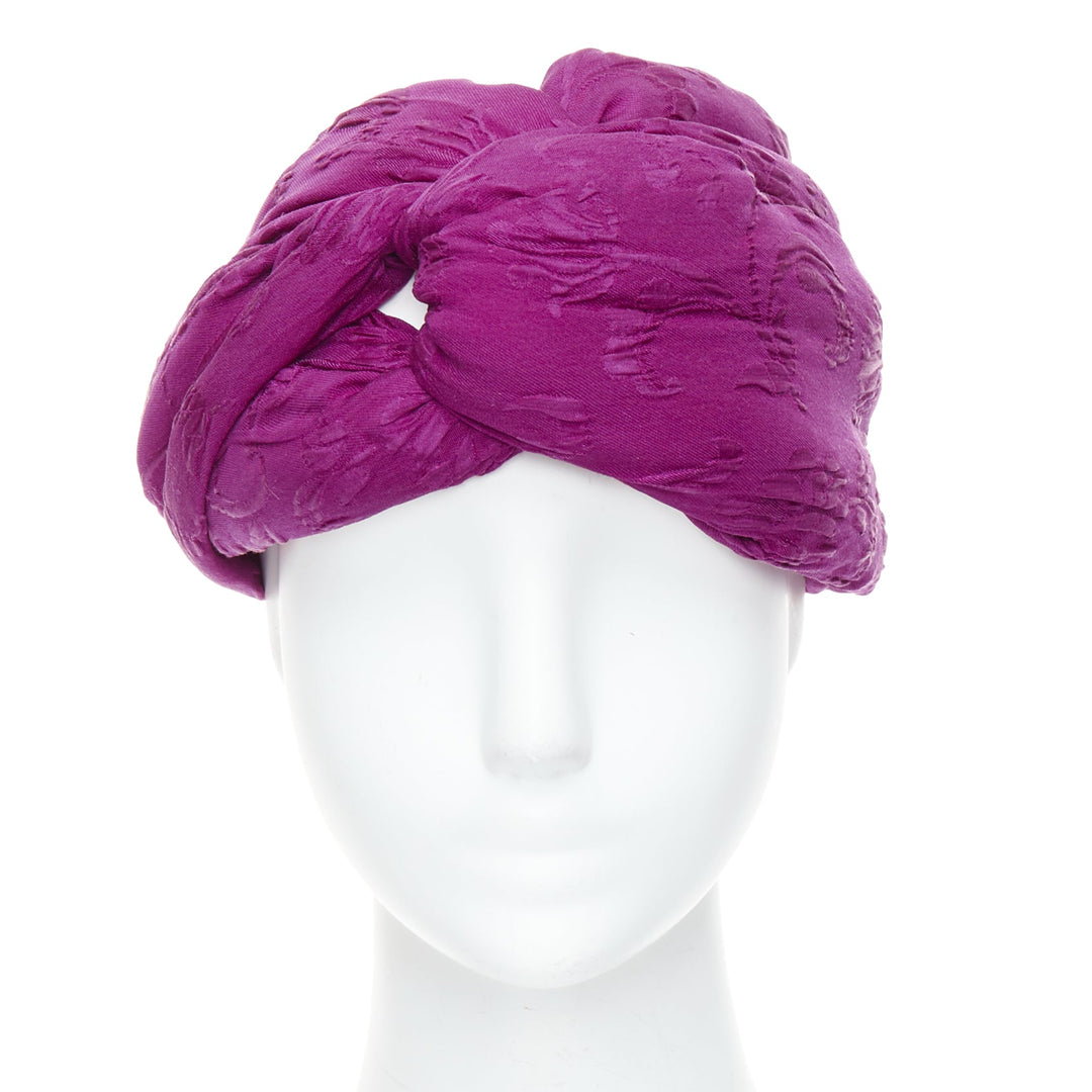 GUCCI Old Hollywood purple silk brocade knot turban headband 57cm M