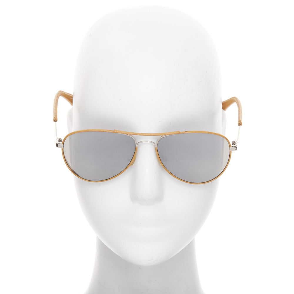 LINDA FARROW Veronique Branquinho tan leather trim aviators pilot sunglasses