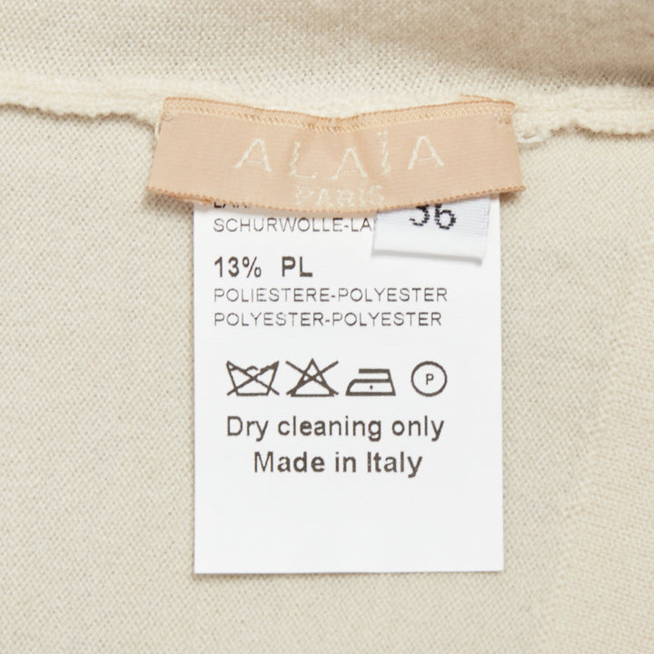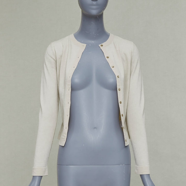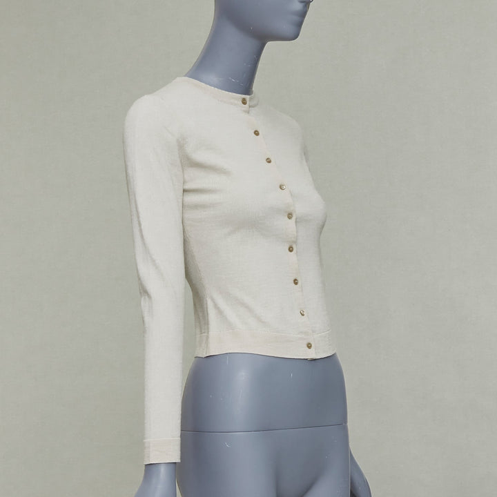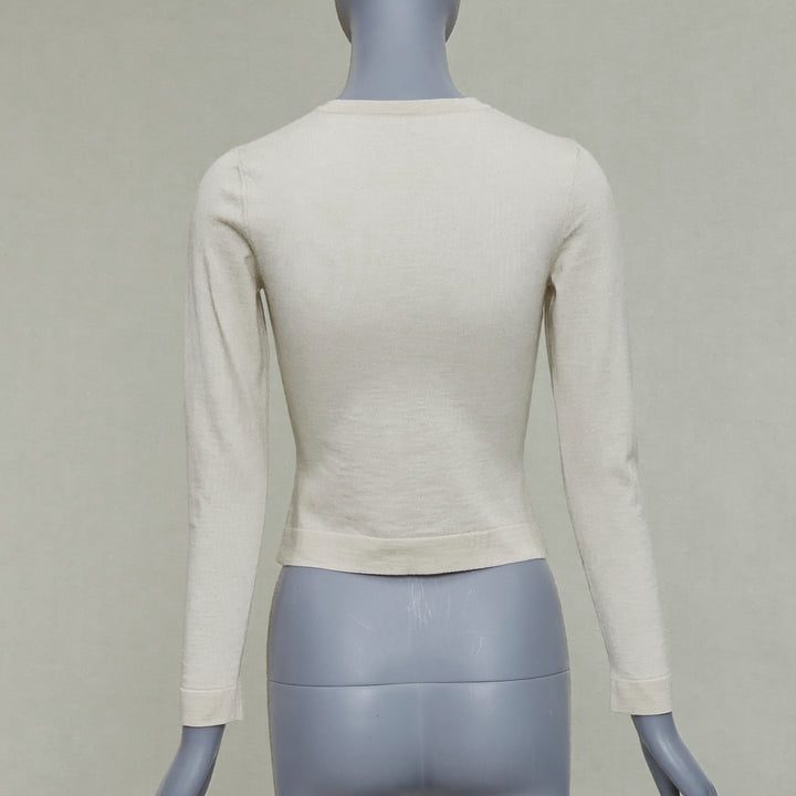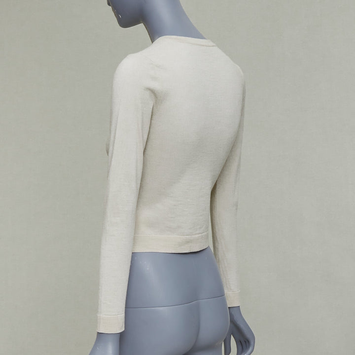 ALAIA beige virgin wool blend mini buttons classic cropped cardigan FR36 S