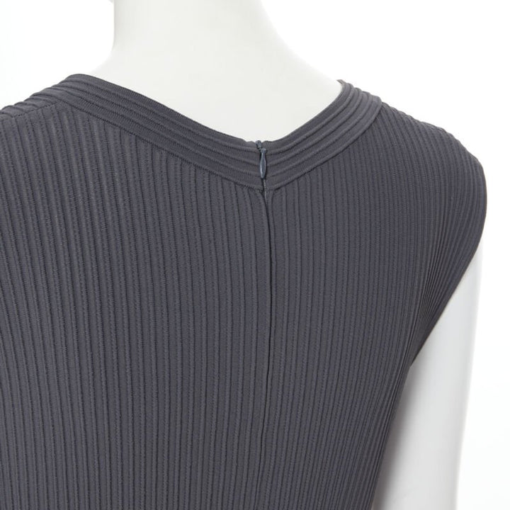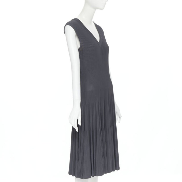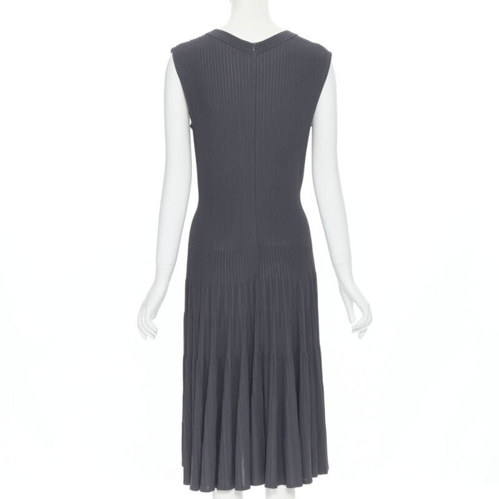 ALAIA dust grey ribbed V-neck sleeveless fit flared cocktail dress M