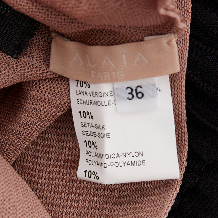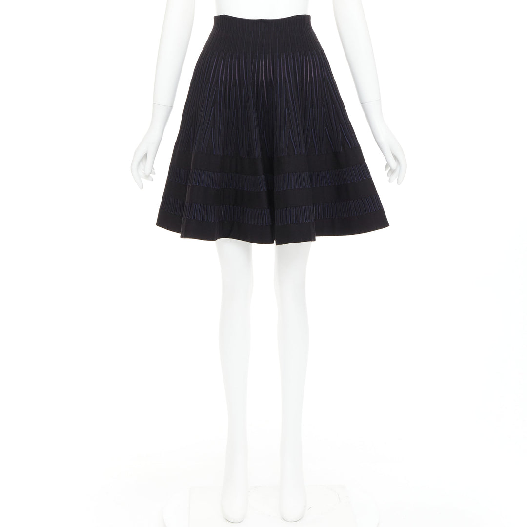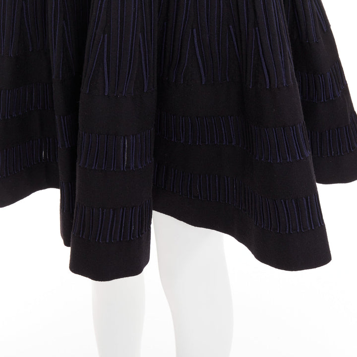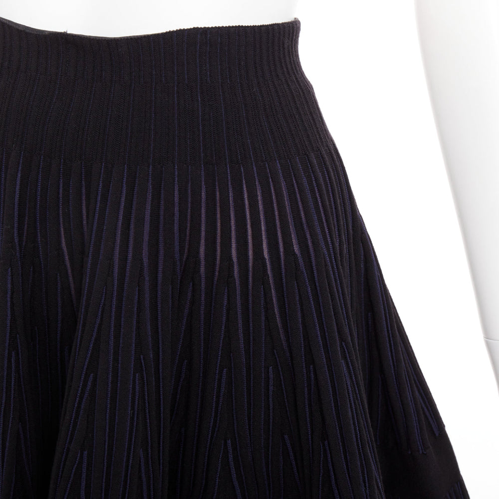 ALAIA navy black virgin wool silk blend high waist flared knitted skirt IT36 XXS