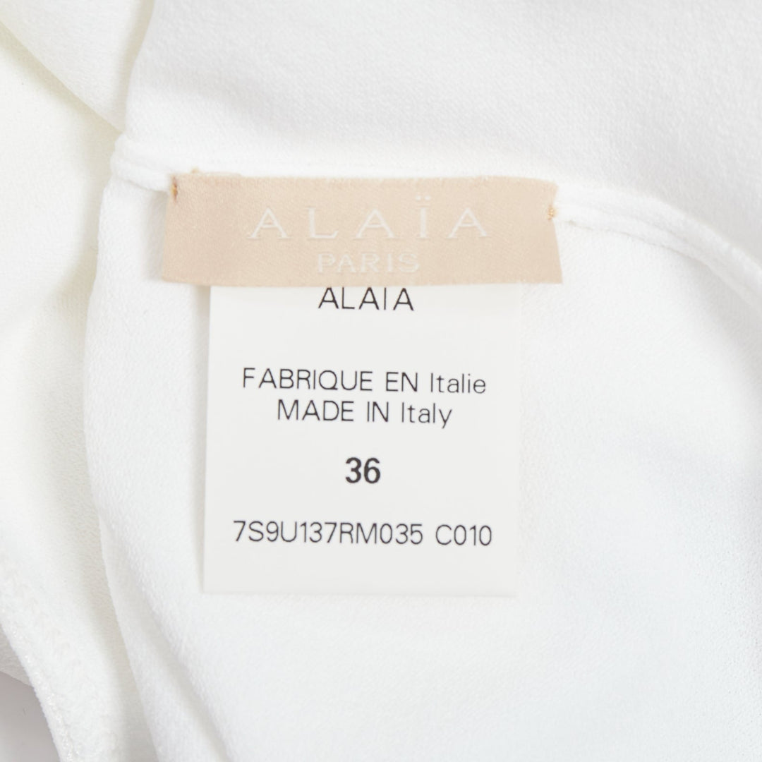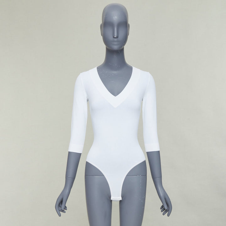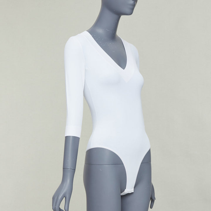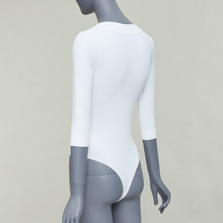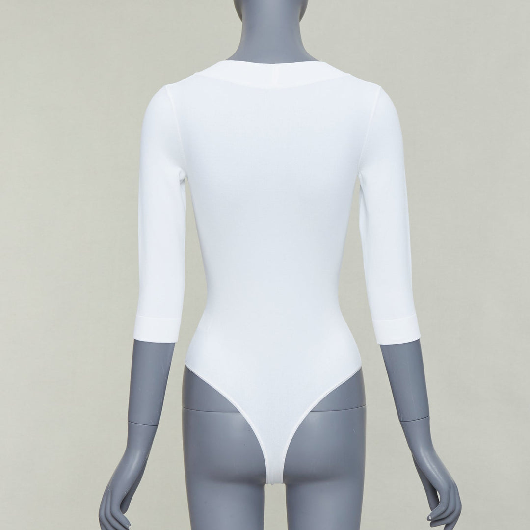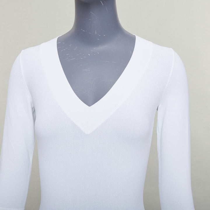 ALAIA white viscose blend V-neck 3/4 sleeves bodysuit top FR36 S