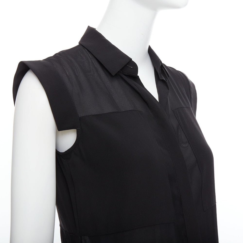 T ALEXANDER WANG black sheer silk blend panelled cap sleeve button front dress XS