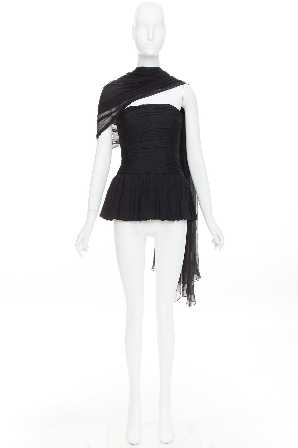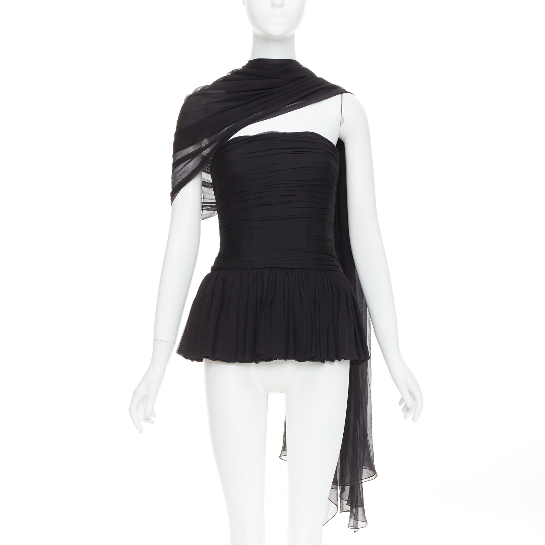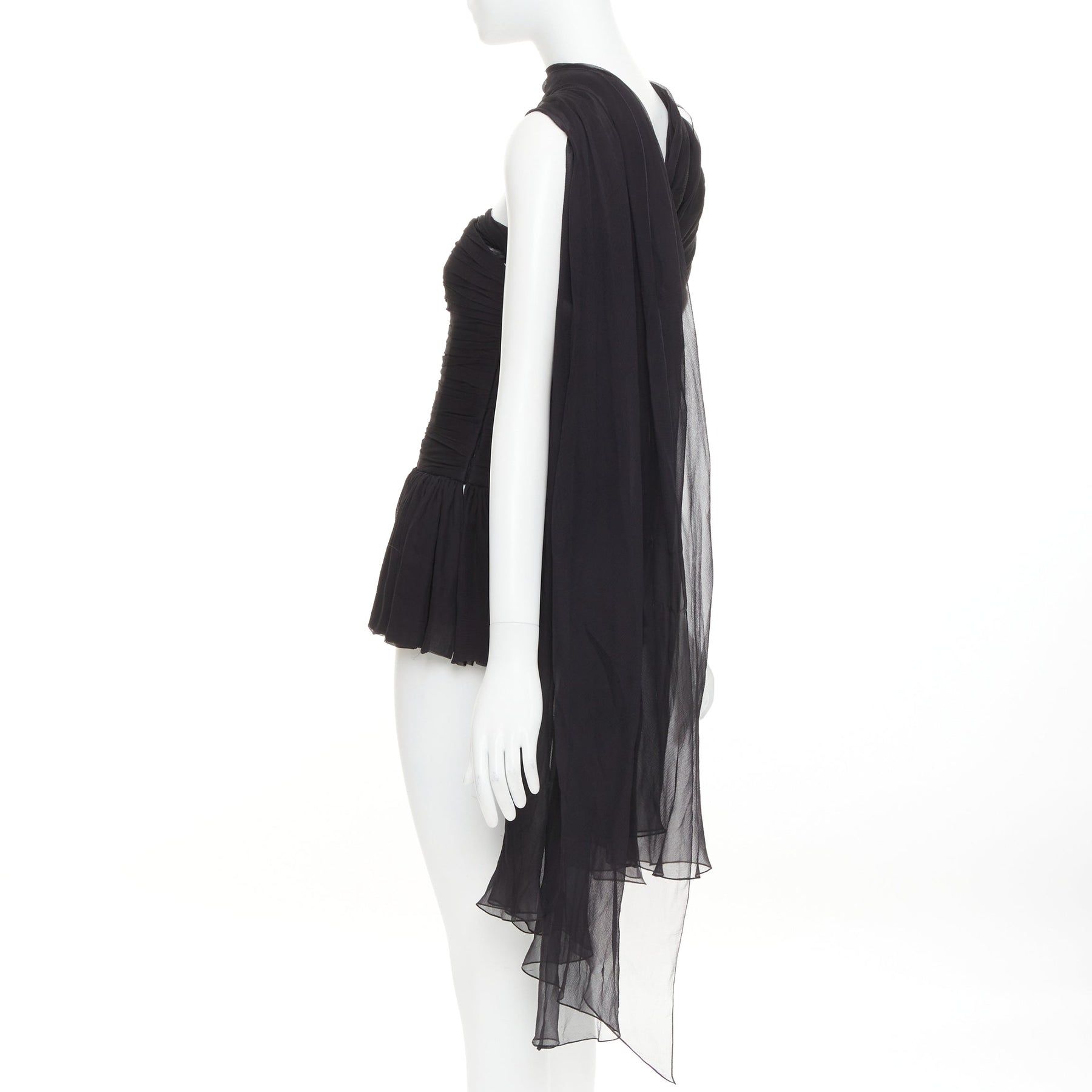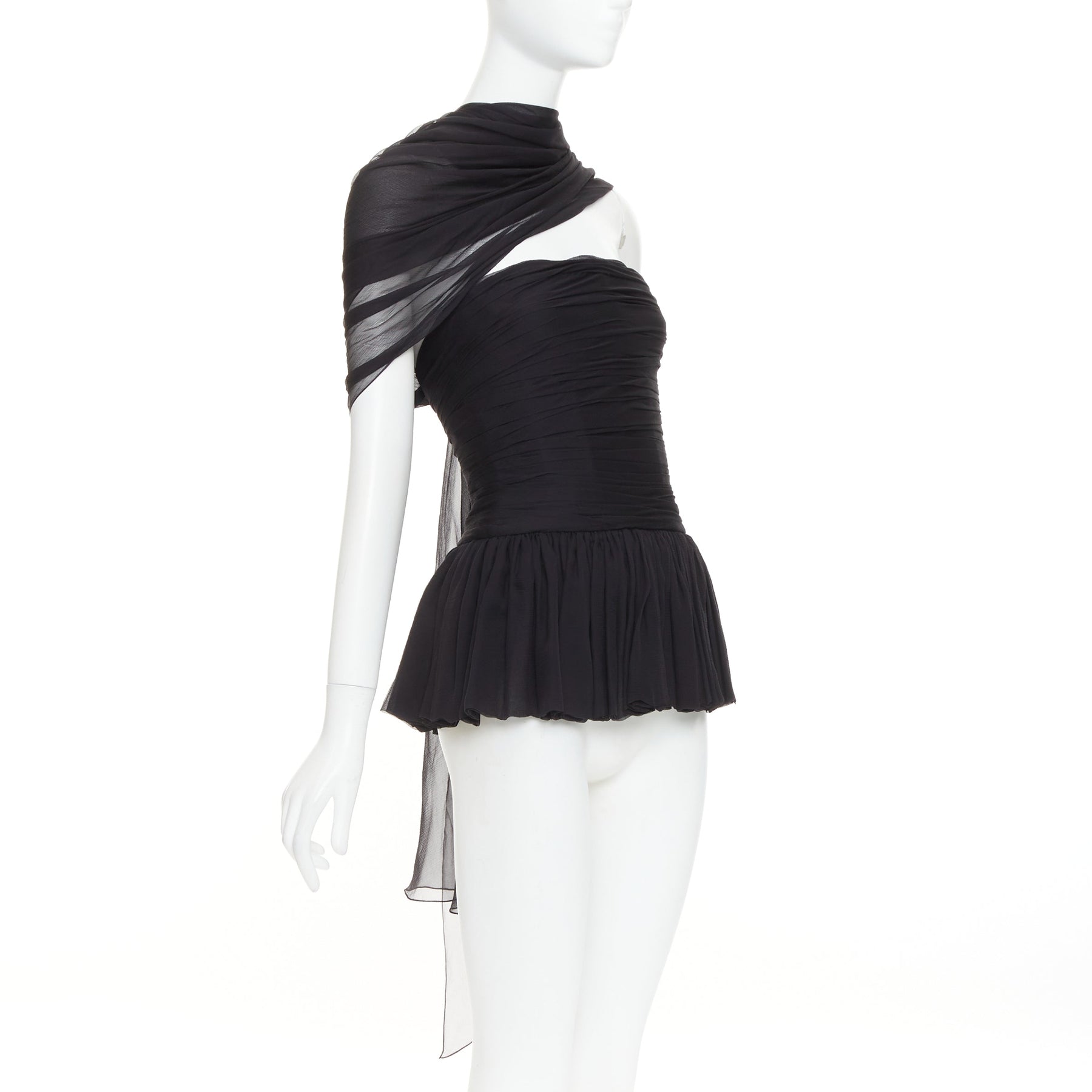 ALEXANDRE VAUTHIER AW2010 COUTURE Runway black silk chiffon pleated peplum drape sash top