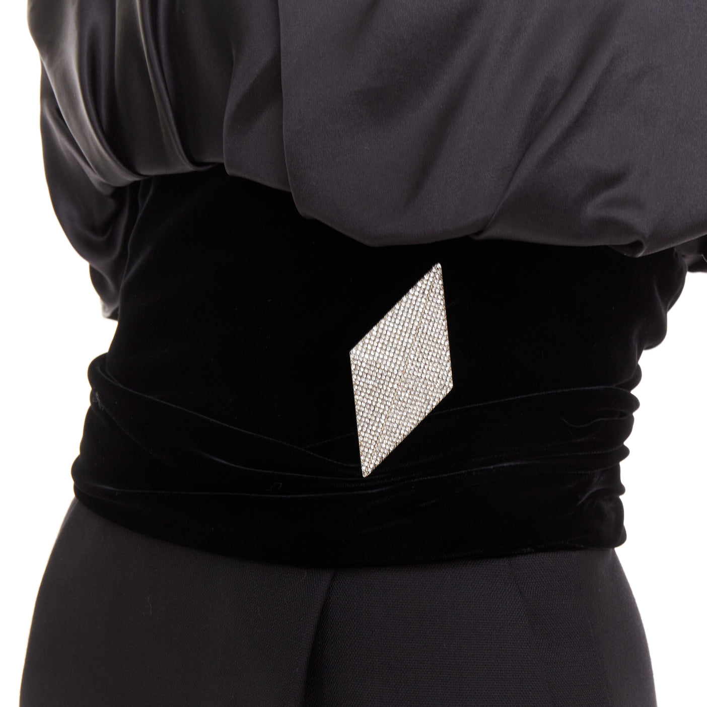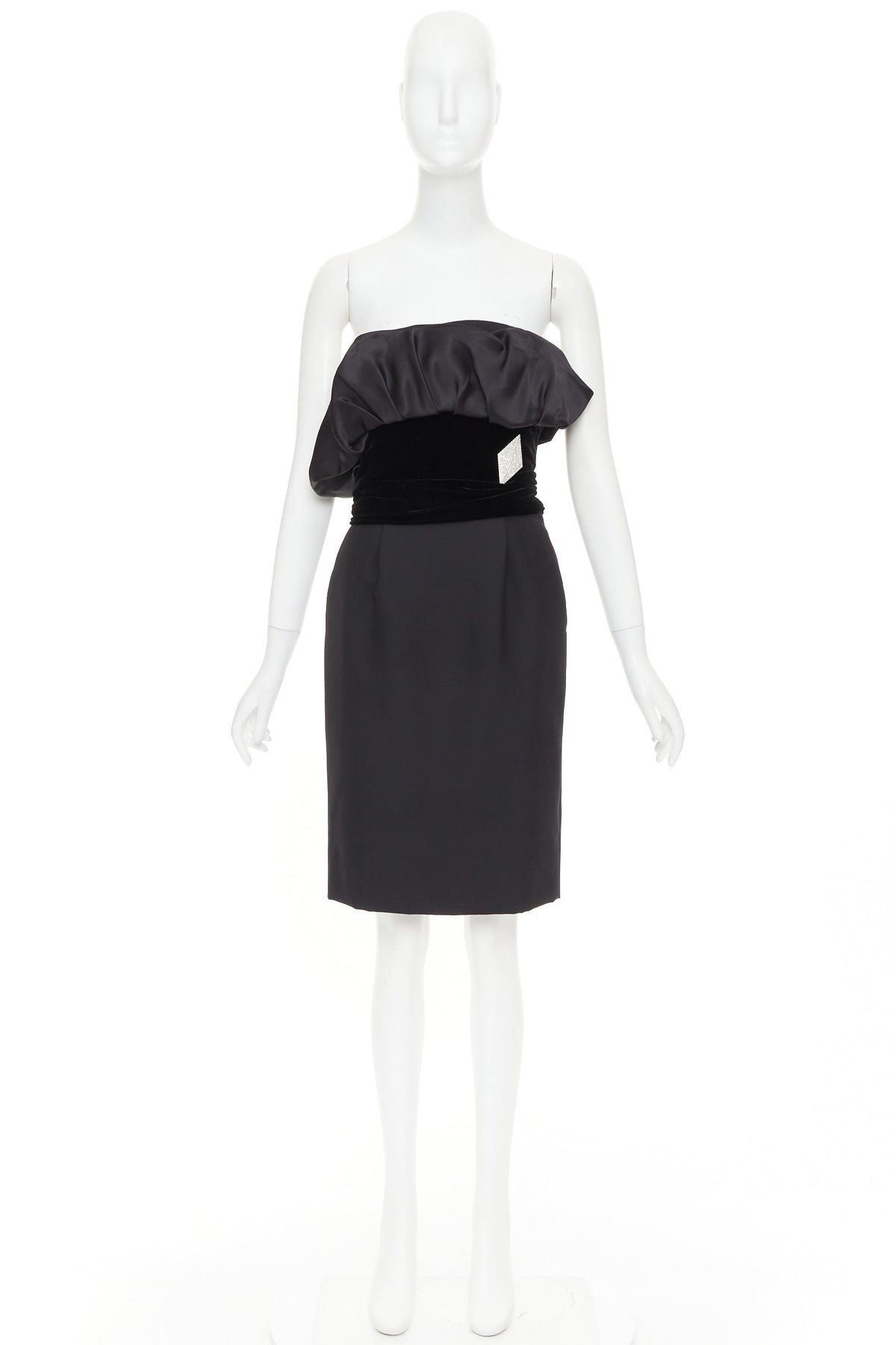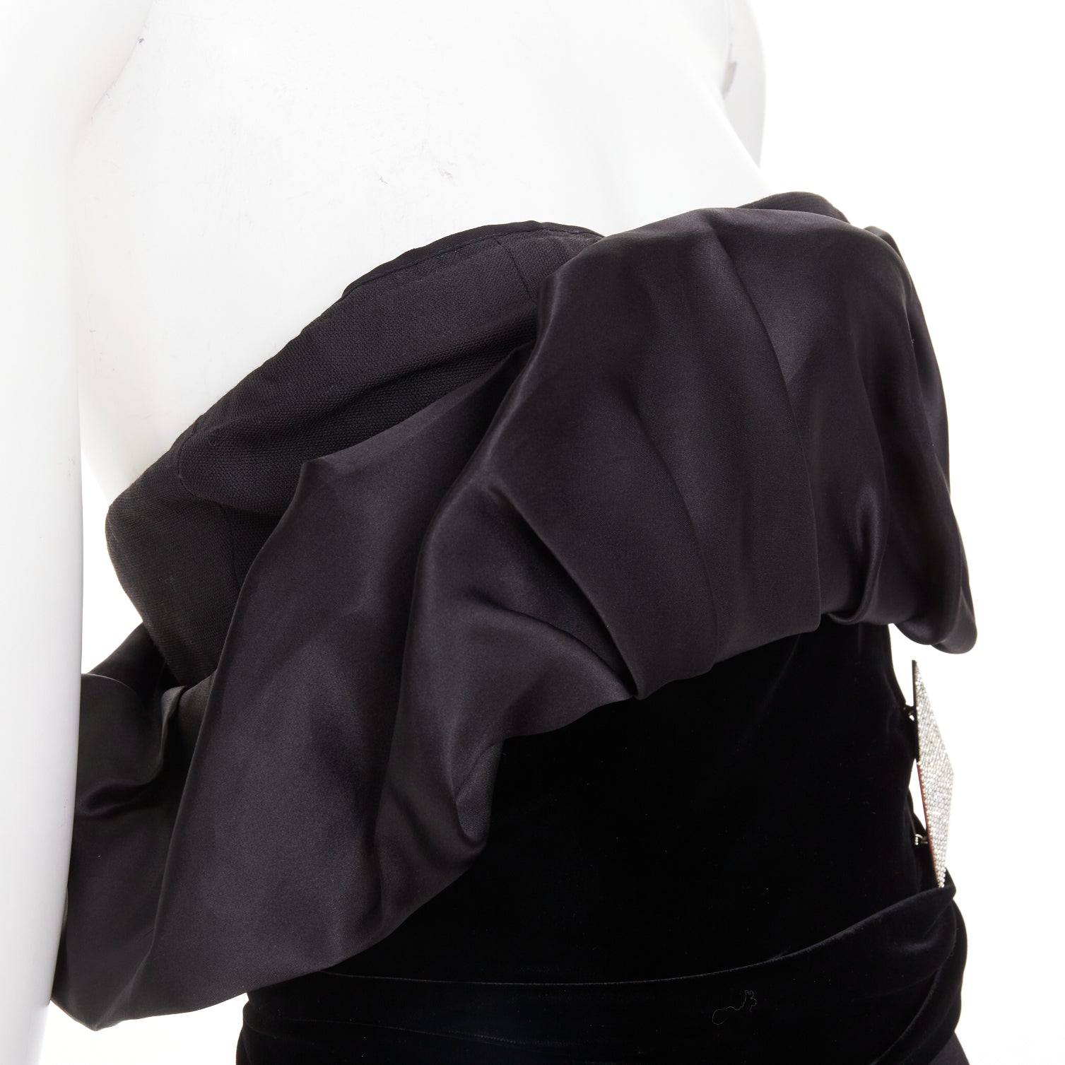 ALEXANDRE VAUTHIER black crystal pave brooch velvet belt satin strapless dress