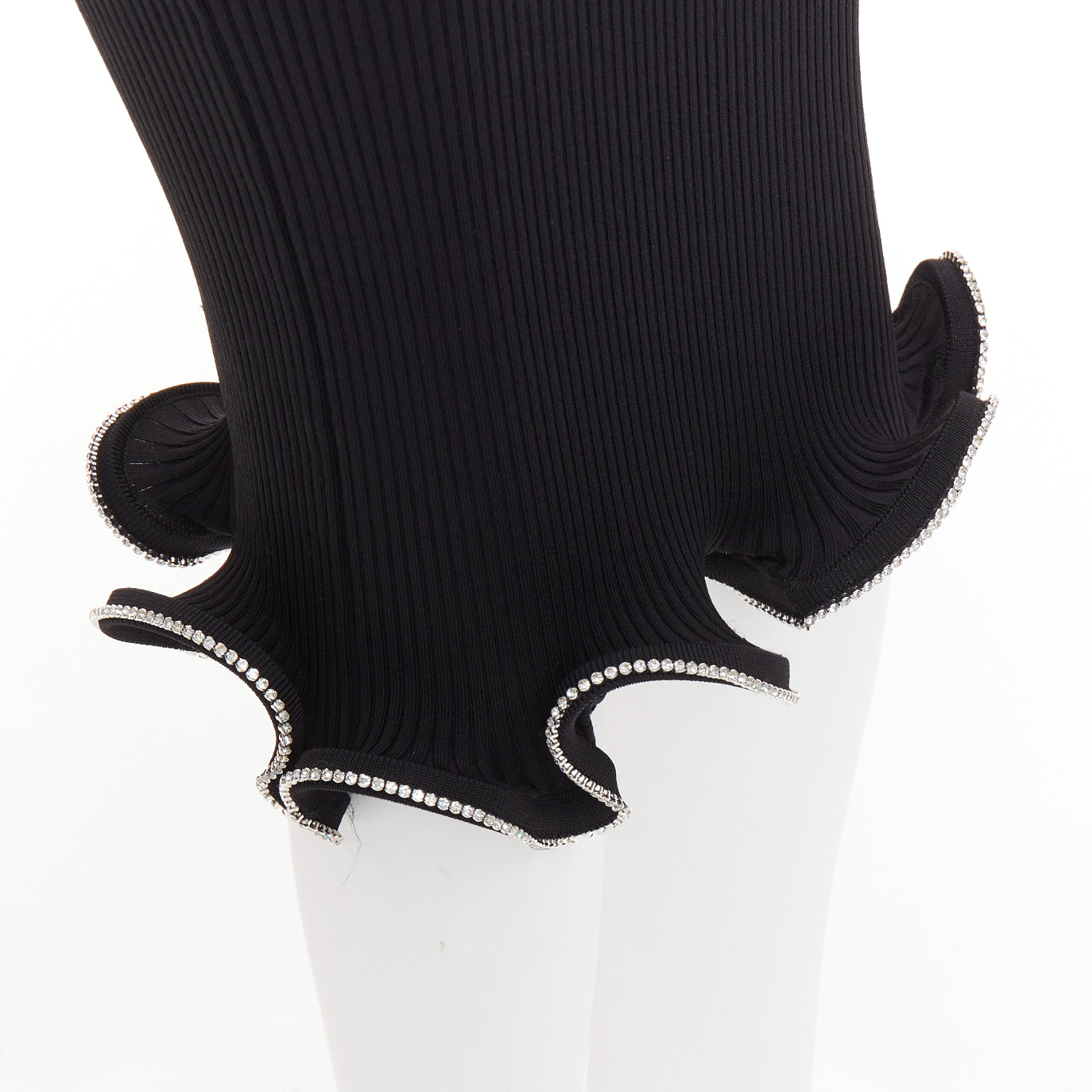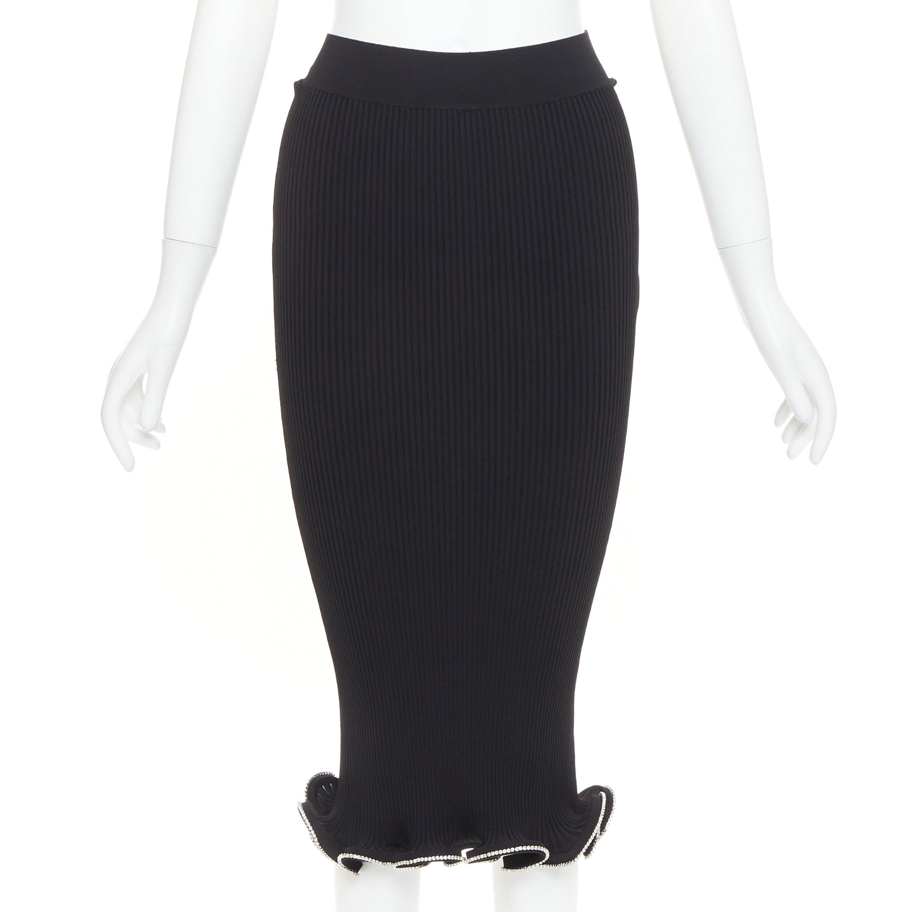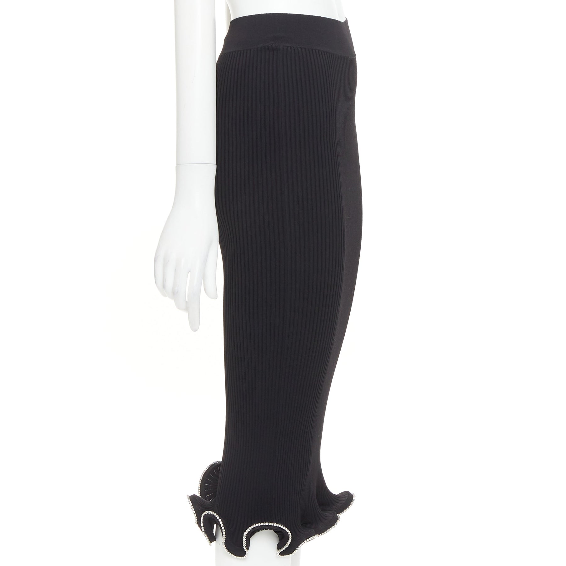 ALEXANDRE VAUTHIER black ribbed knit silver strass crystal flounce ruffle skirt