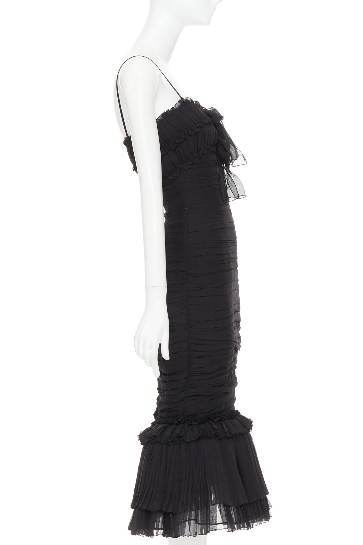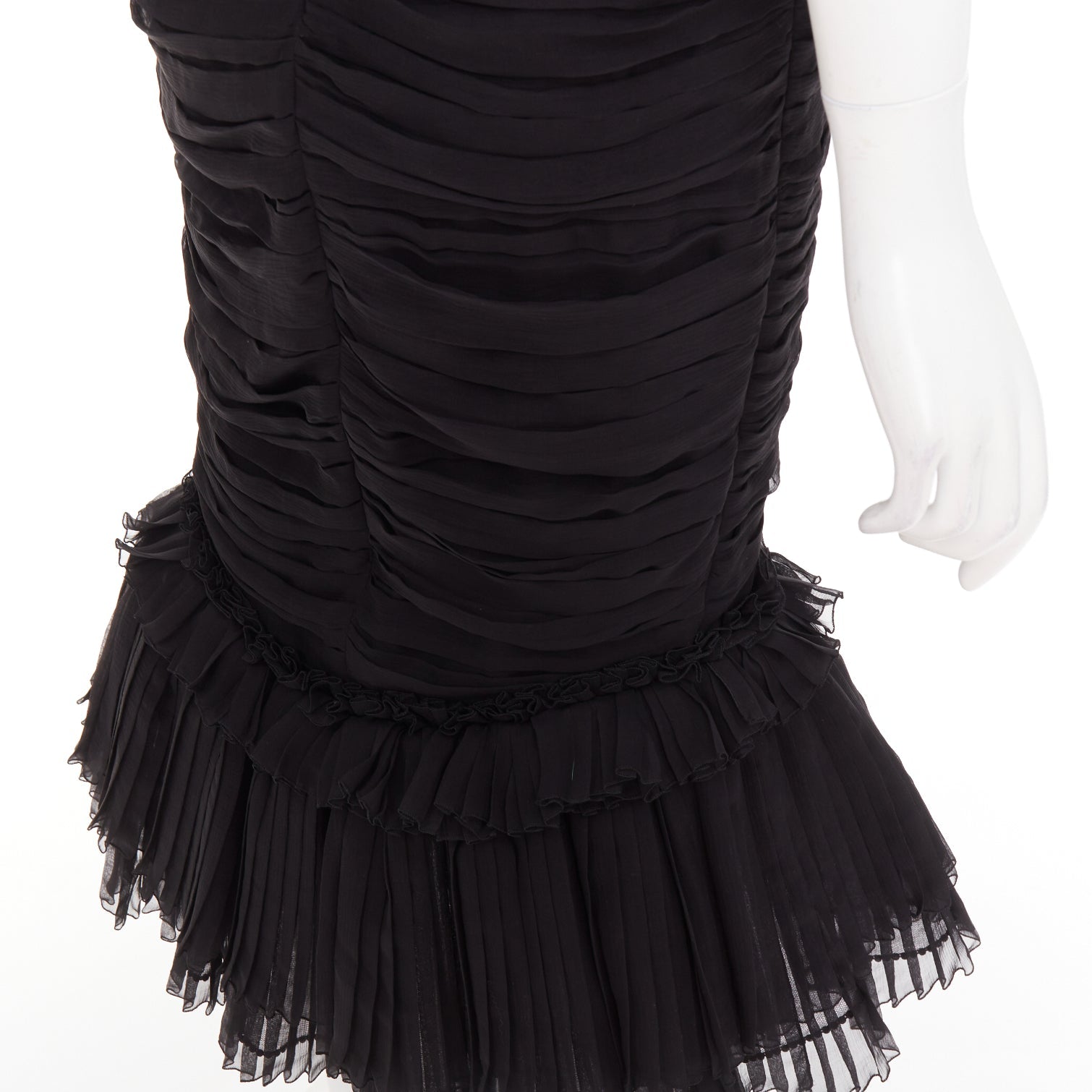 ALEXANDRE VAUTHIER COUTURE black chiffon ruched tulle flared crystal skirt dress