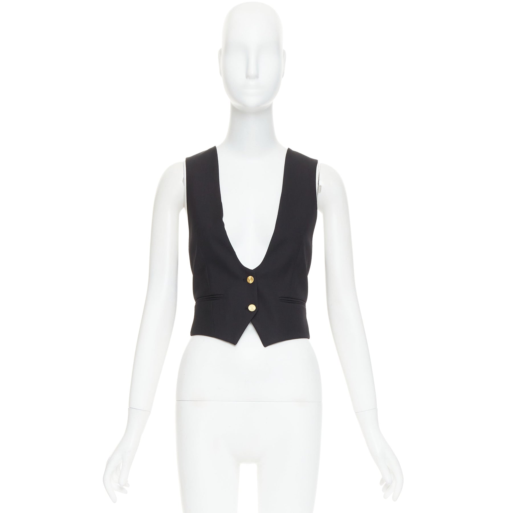 ALEXANDRE VAUTHIER COUTURE Runway black gold buttons plunge neck waistcoat vest