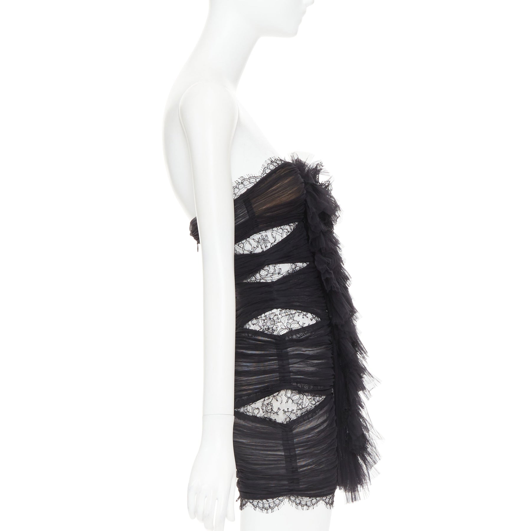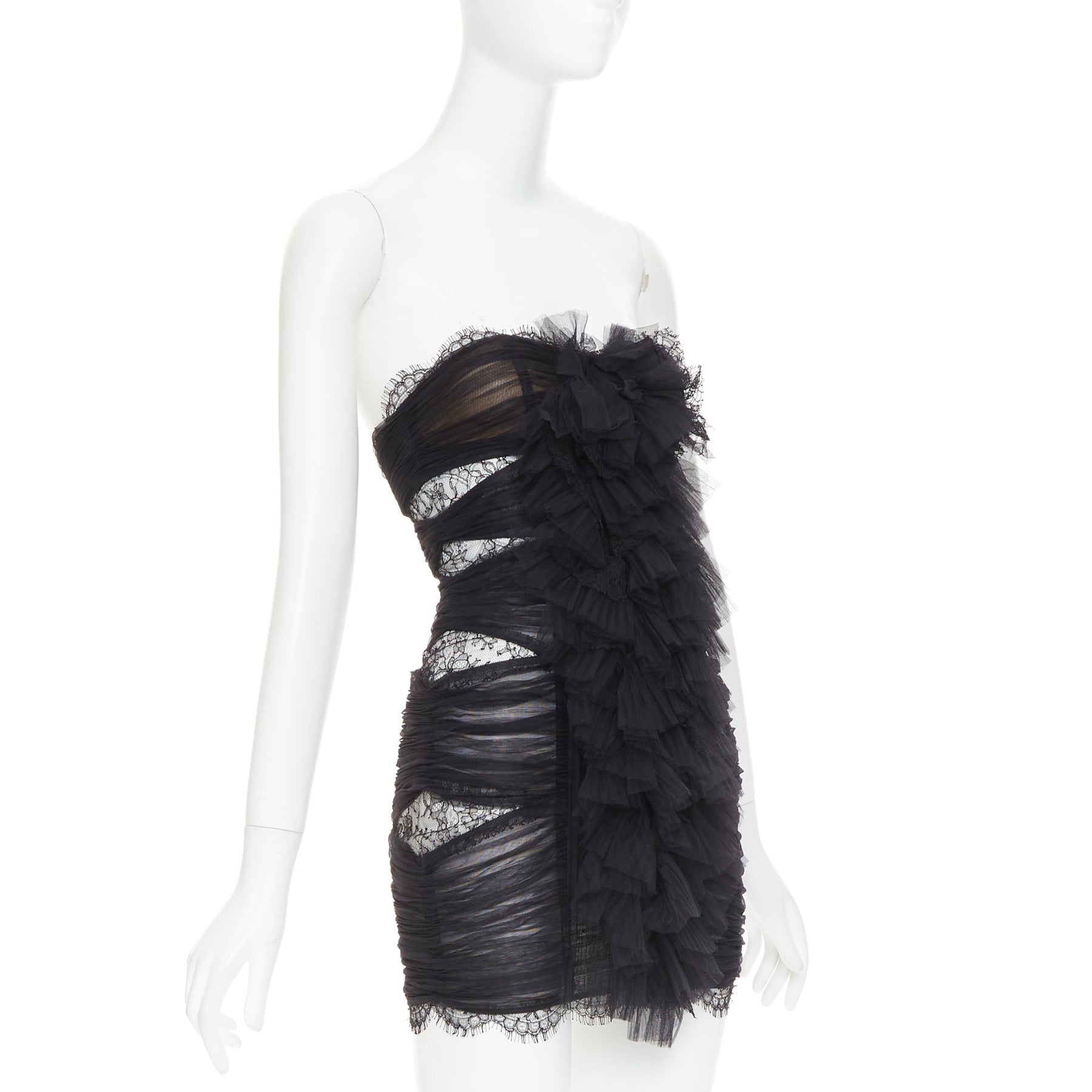 rare ALEXANDRE VAUTHIER COUTURE AW2022 Runway Lognon black pleated tulle lace ruffle mini dress