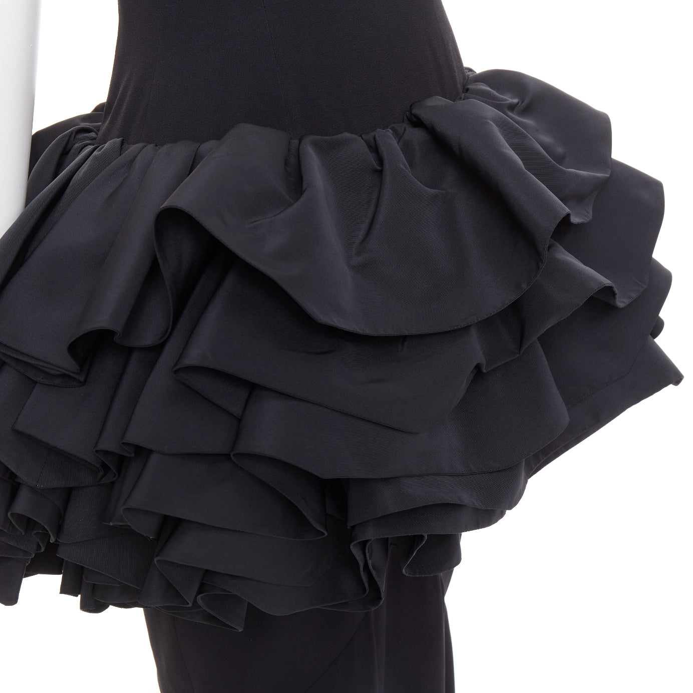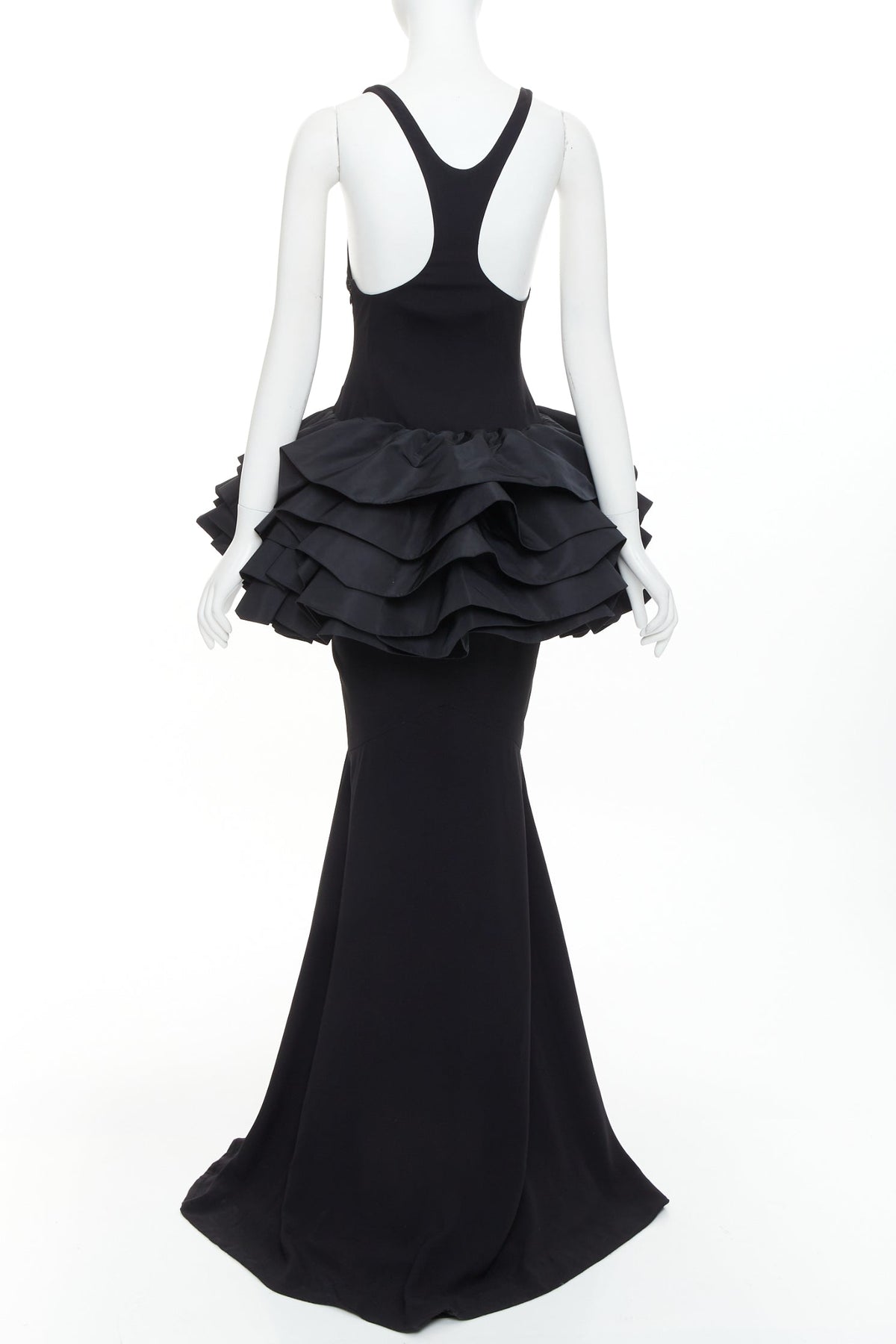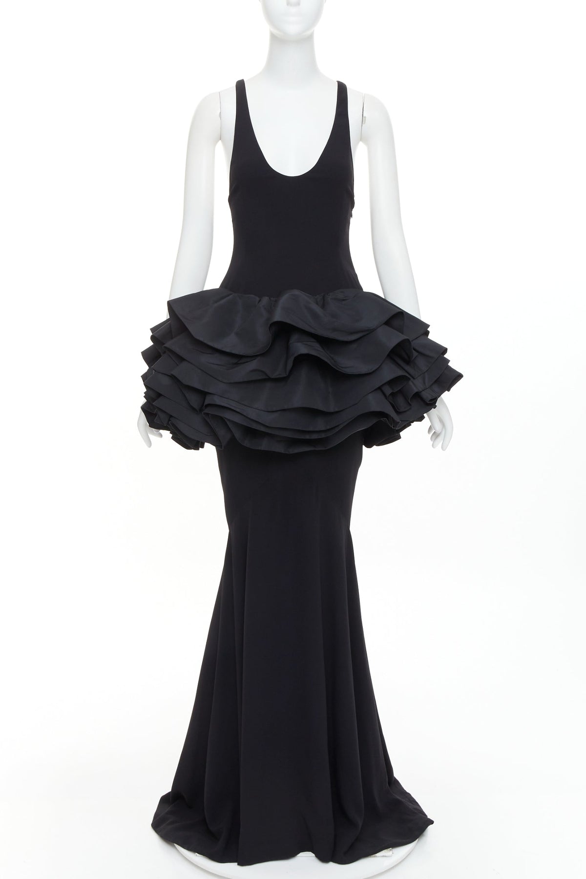 rare ALEXANDRE VAUTHIER COUTURE black scoop neck ruffle peplum evening gown dress