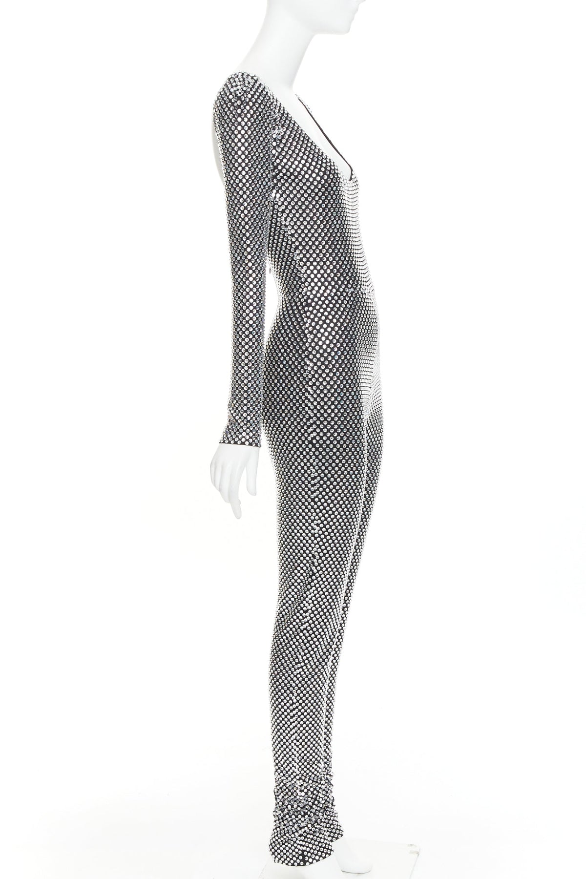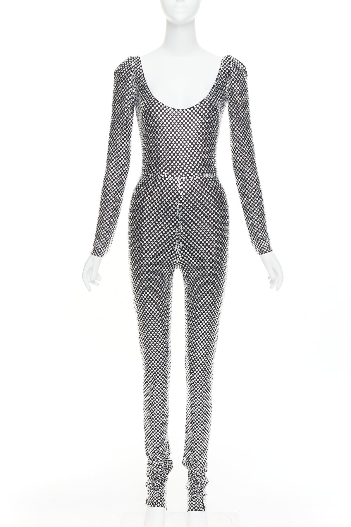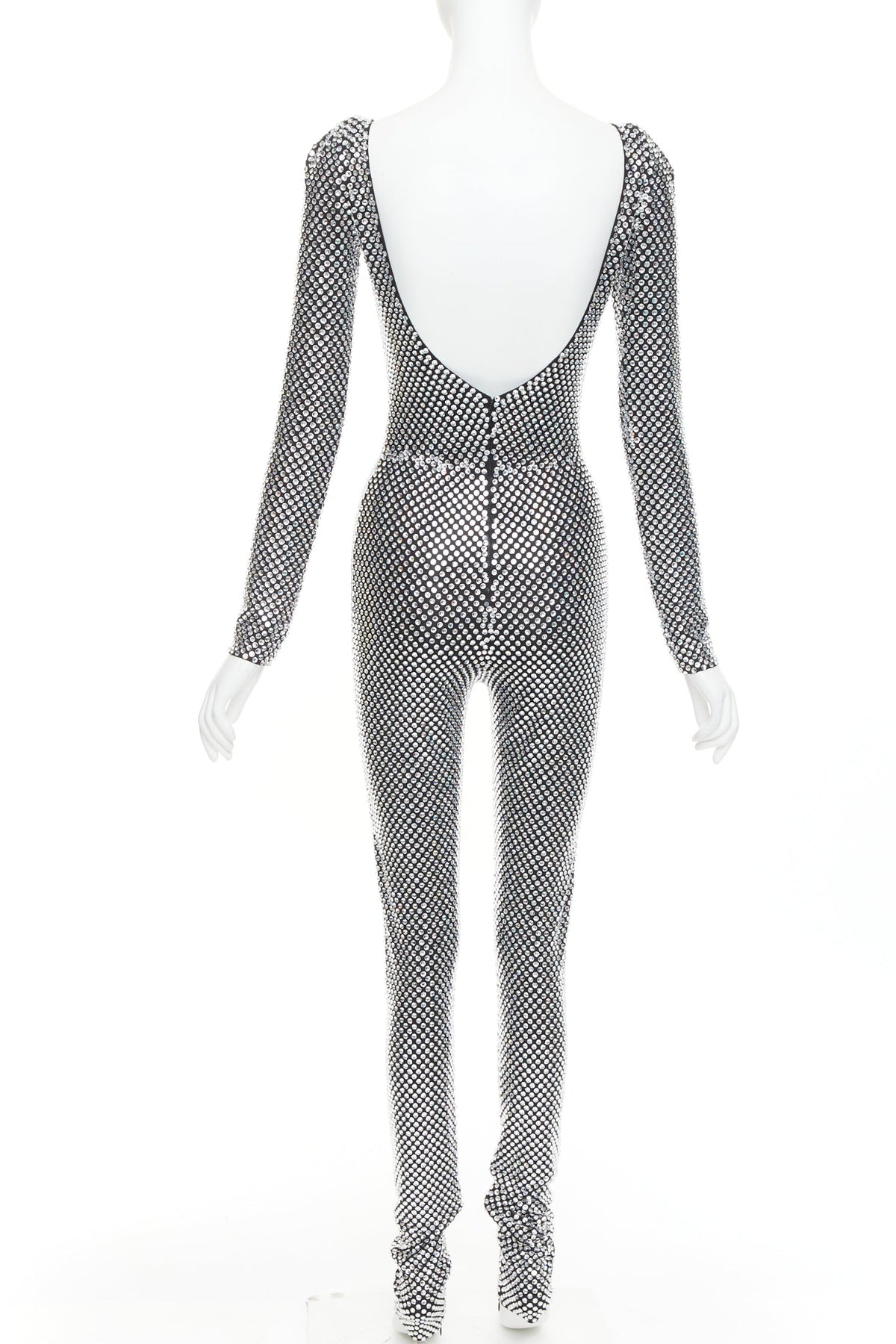 rare ALEXANDRE VAUTHIER COUTURE SS2021 Runway silver large strass crystal scoop neck jumpsuit
