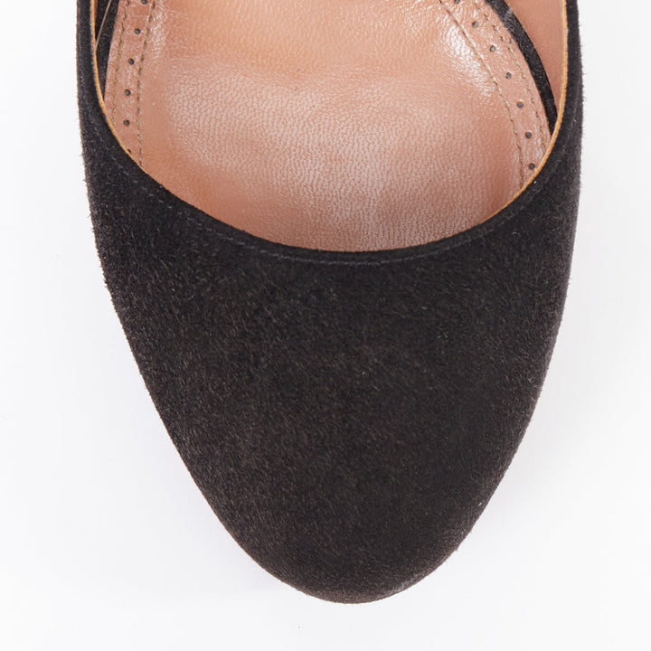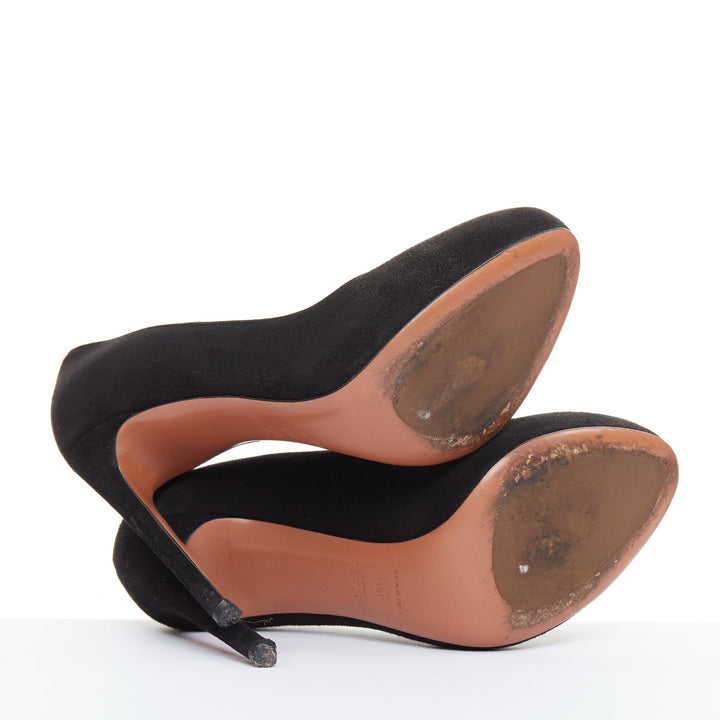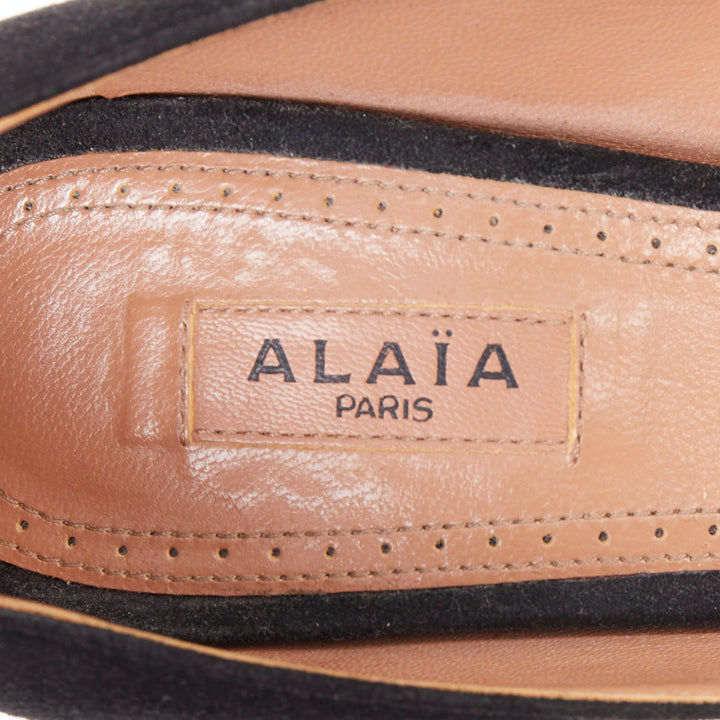 ALAIA black suede leather almond toe high heel court pumps EU35.5
