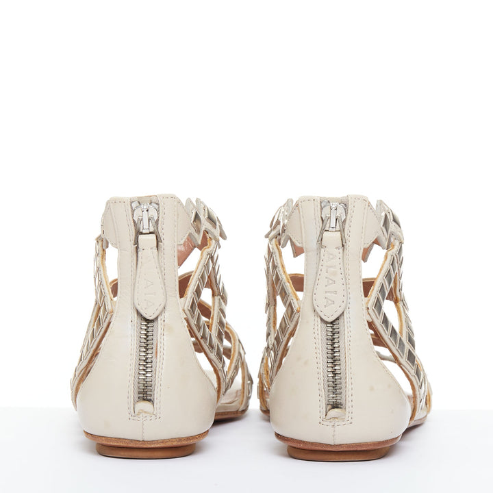 ALAIA silver square studded nude leather flat gladiator sandals EU36.5