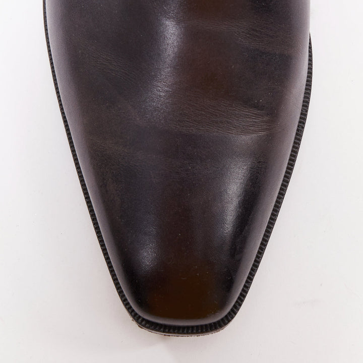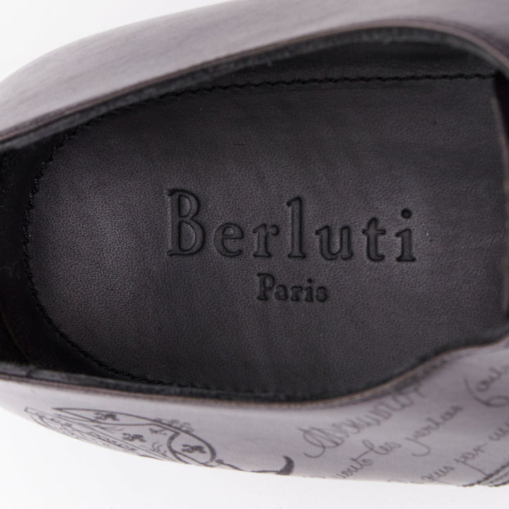 BERLUTI Alessandro dark grey calfskin leather Scritto calligraphy loafer shoes UK8 EU41