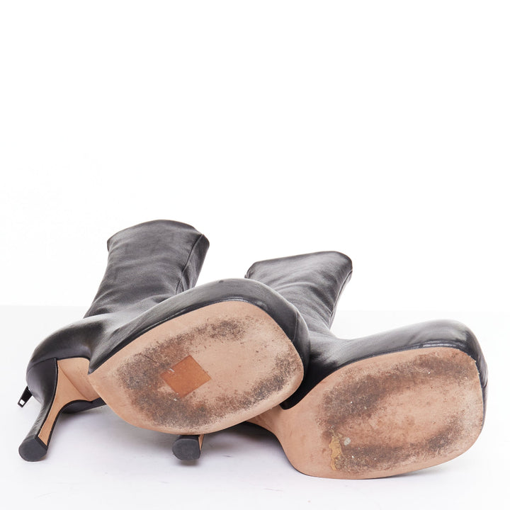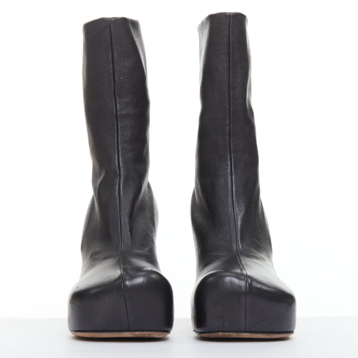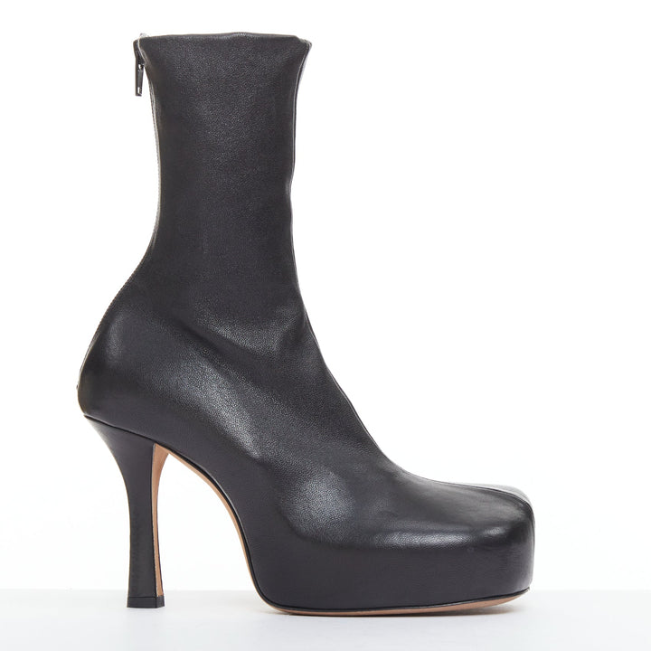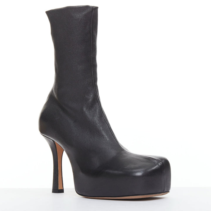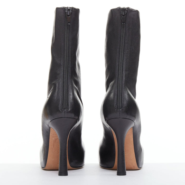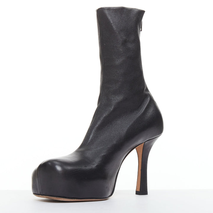 BOTTEGA VENETA Lido black smooth leather spool heeled platform ankle boots EU35