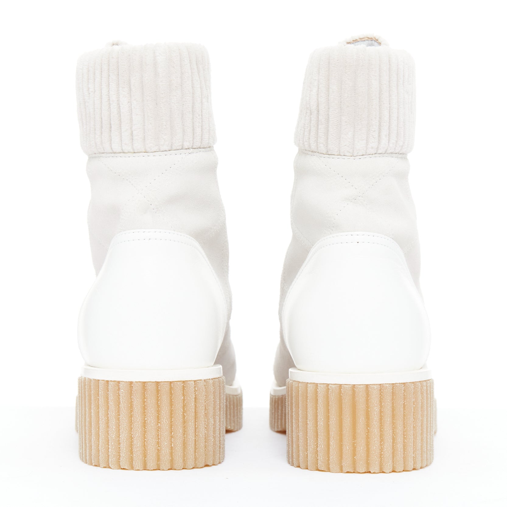 CHANEL 2020 white CC grey suede calfskin quilted combat boots EU38