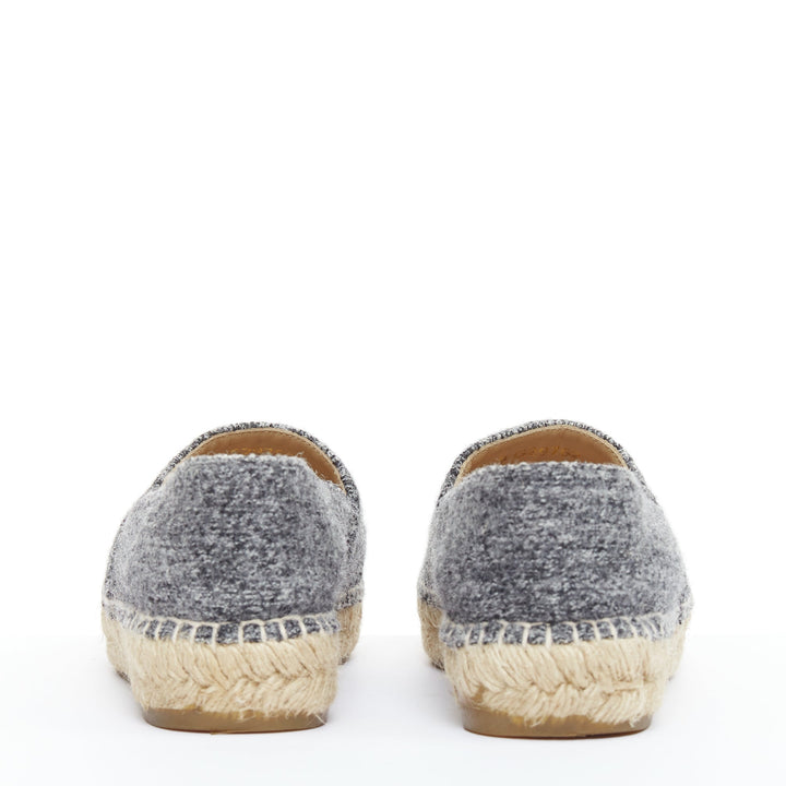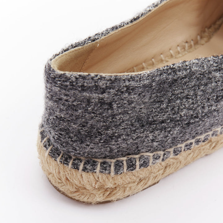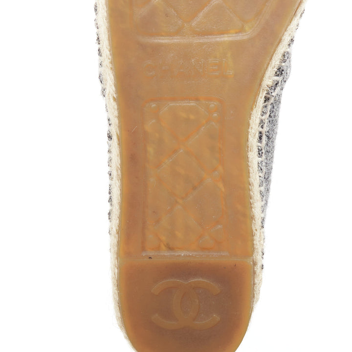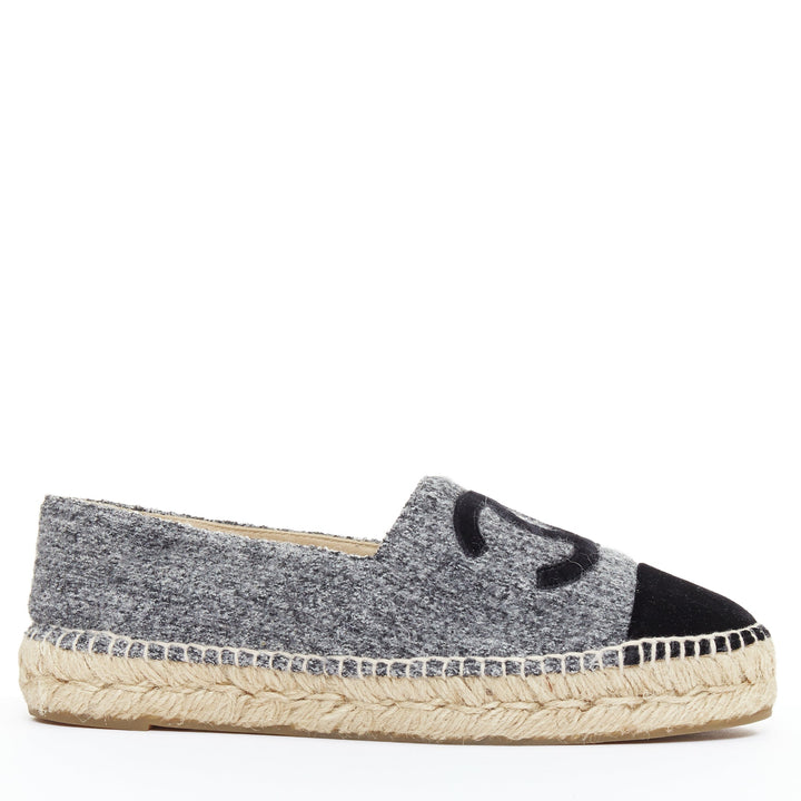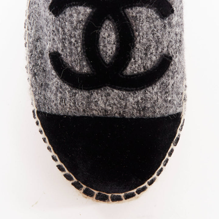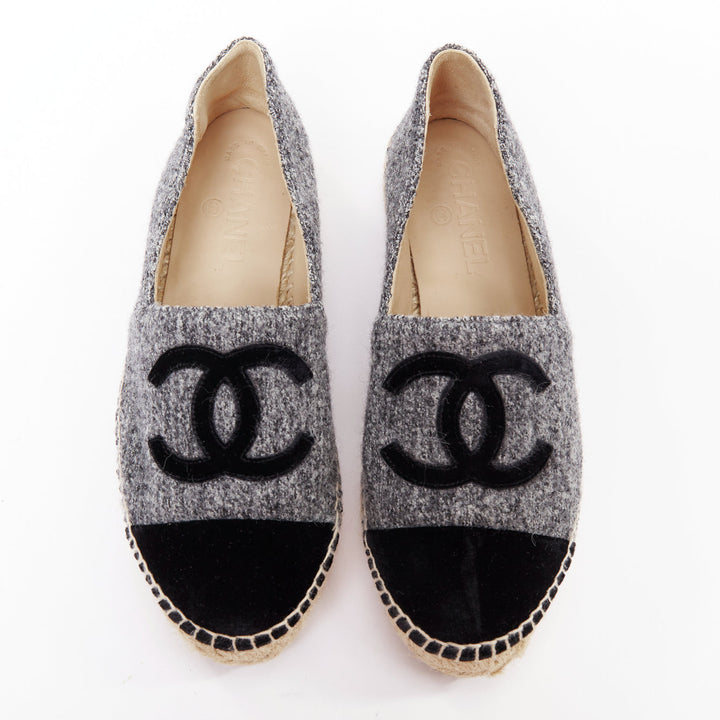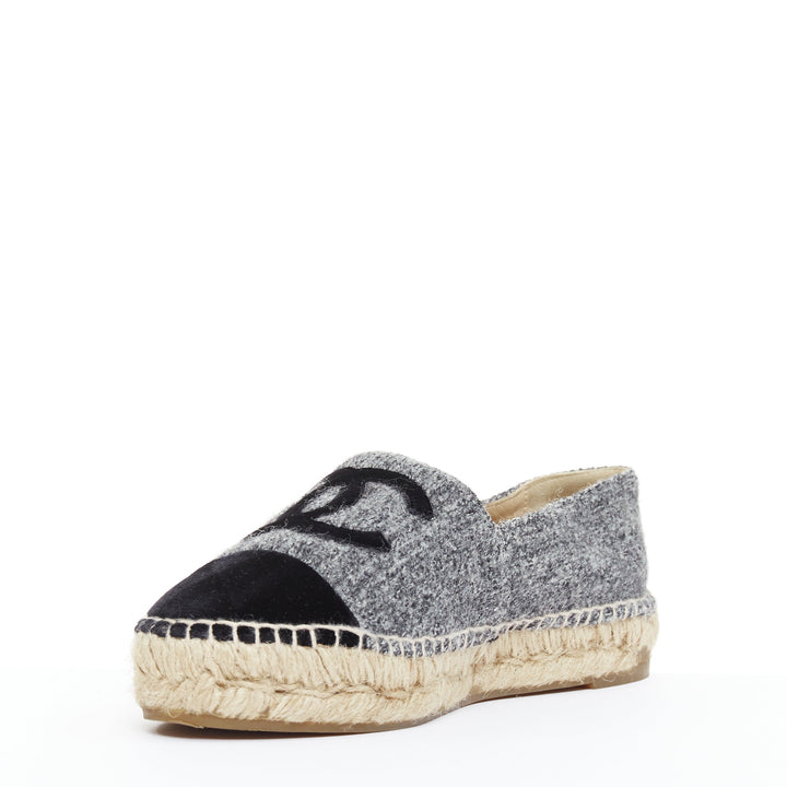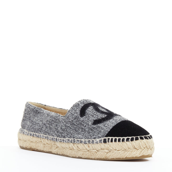CHANEL grey tweed velvet CC logo toe cap espadrille shoes EU38