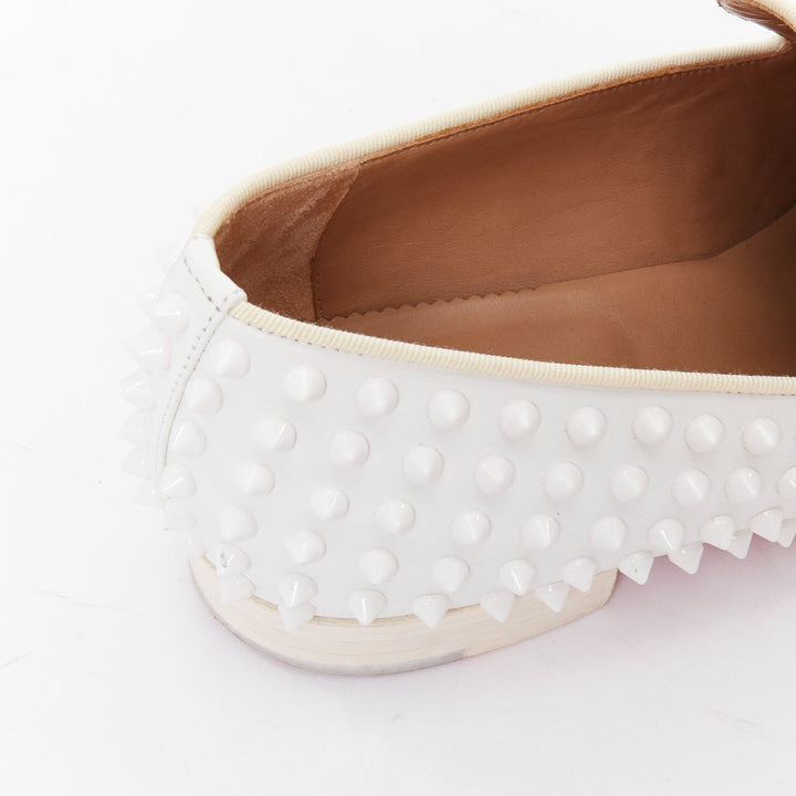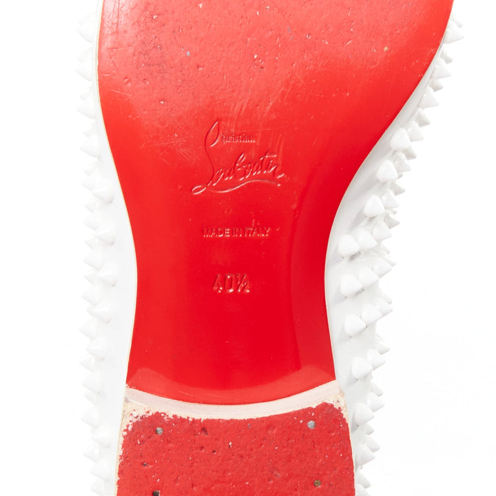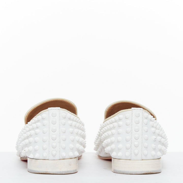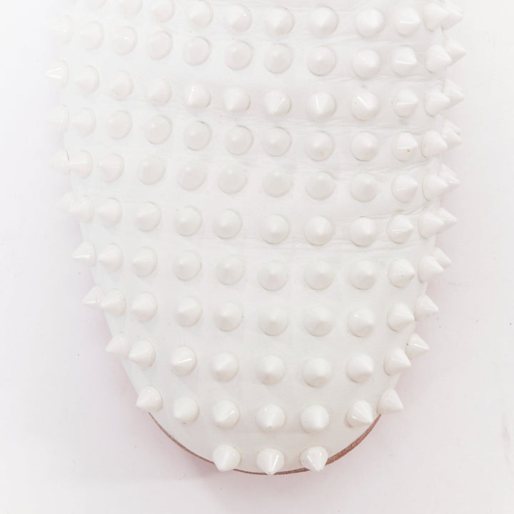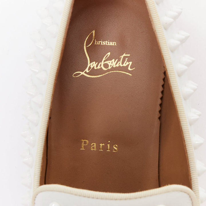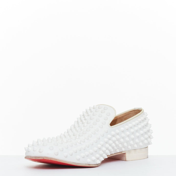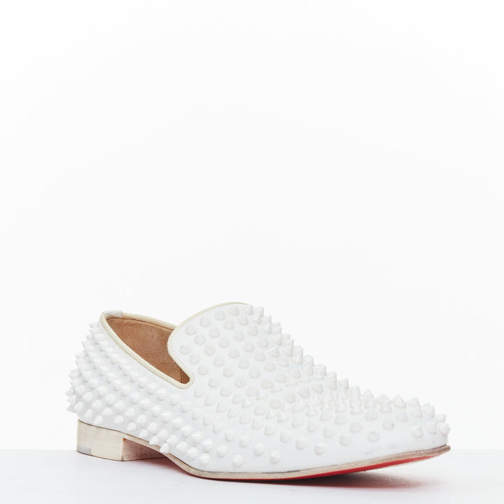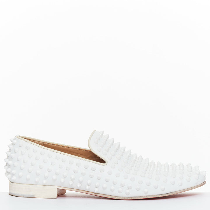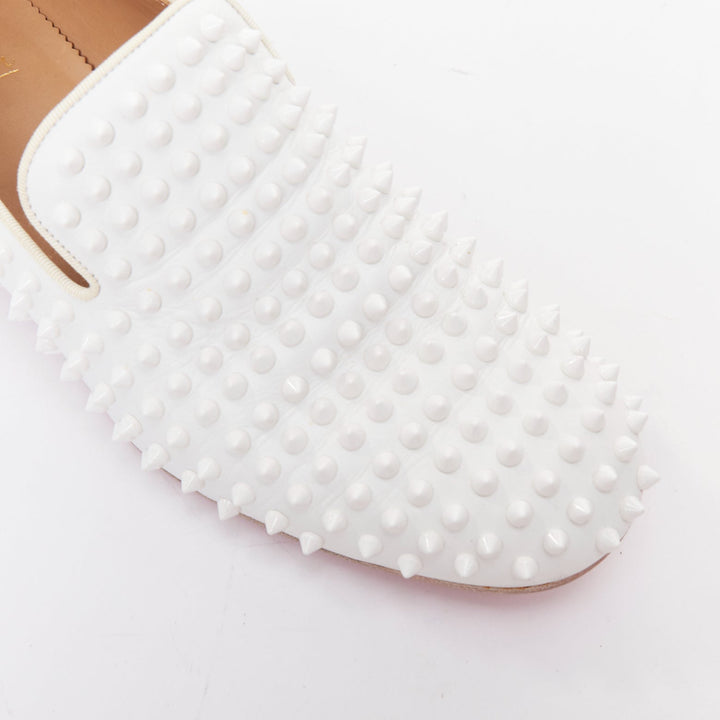 CHRISTIAN LOUBOUTIN Dandelion white leather spike stud loafer shoes EU40.5