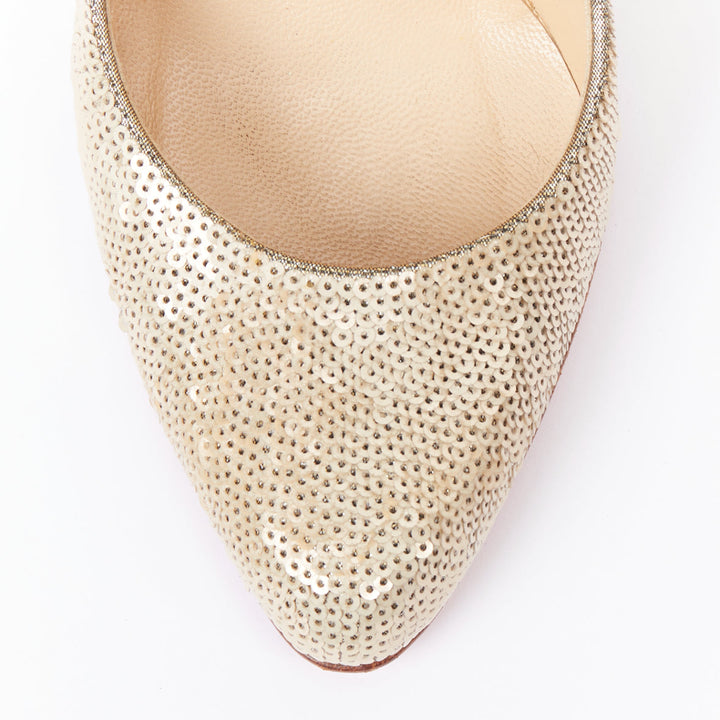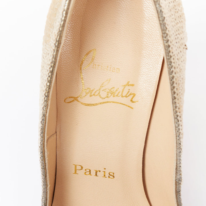 CHRISTIAN LOUBOUTIN Fifi 100 gold sequinned almond toe pumps EU37.5
