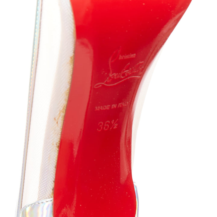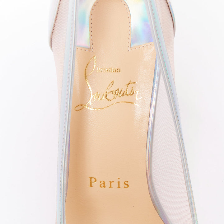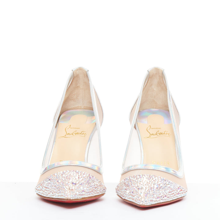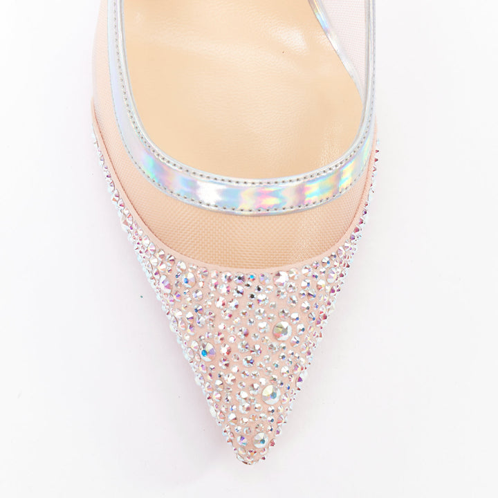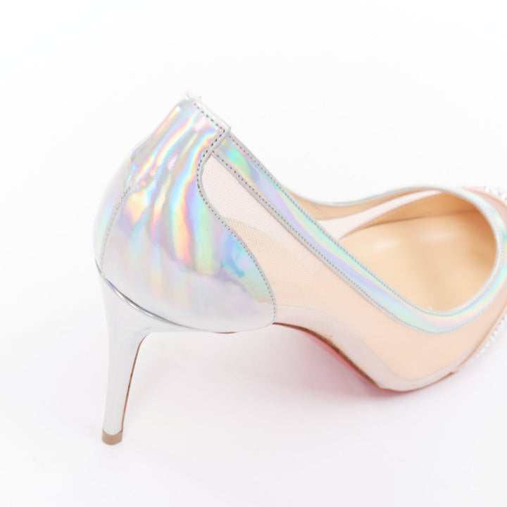 CHRISTIAN LOUBOUTIN Galavati Strass 85 silver iridescent mesh crystal heels EU36.5