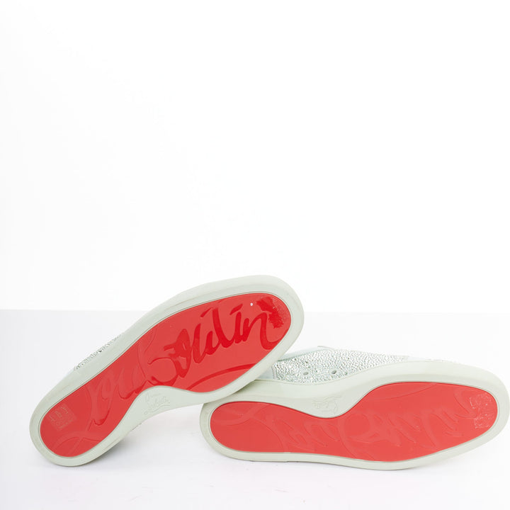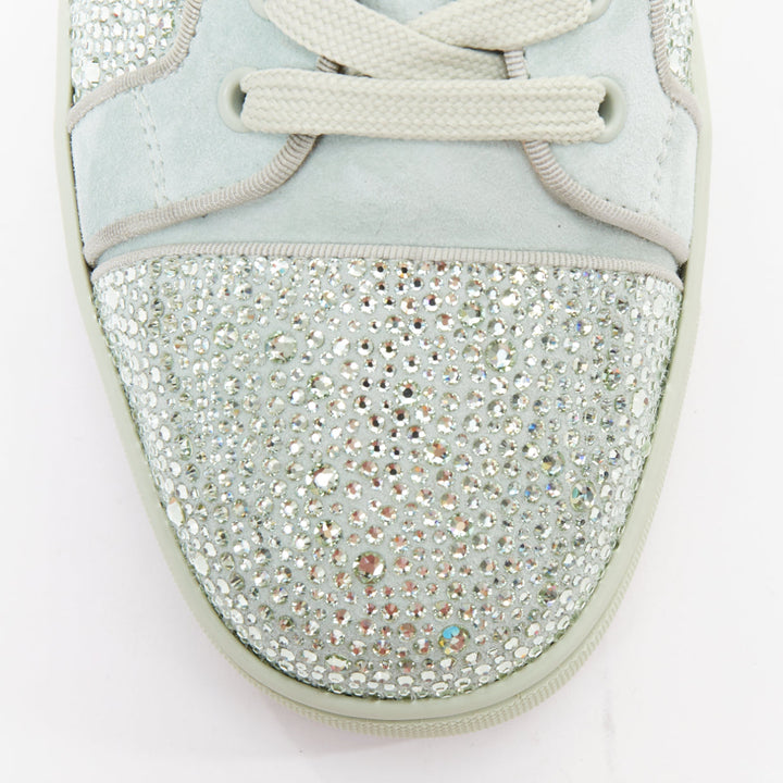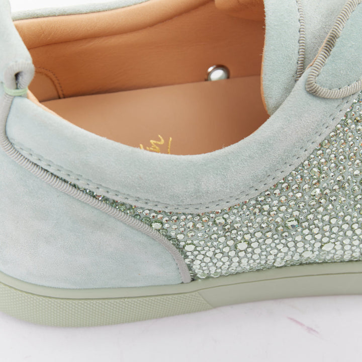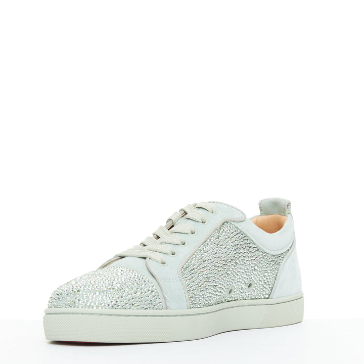 CHRISTIAN LOUBOUTIN Louis Junior Strass Flat Opalina Chrysolite green crystal low top sneaker EU43