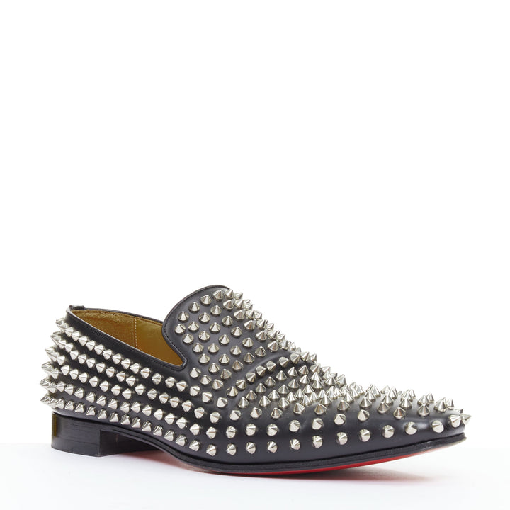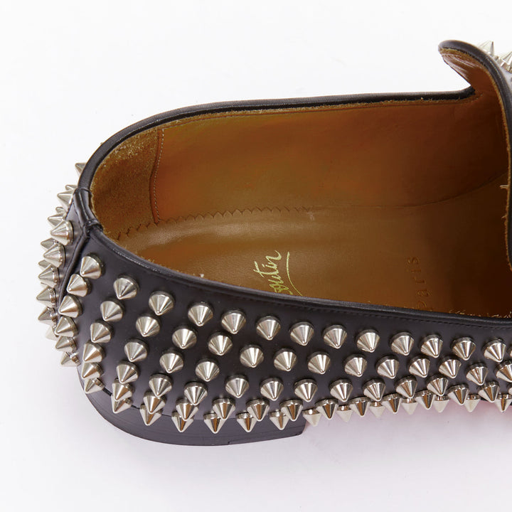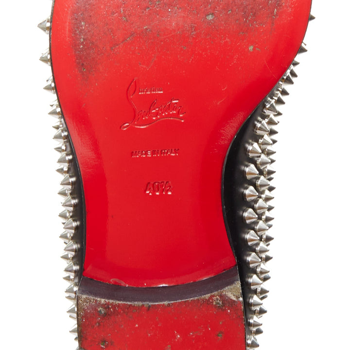 CHRISTIAN LOUBOUTIN Rollerboy black silver leather spike stud loafers EU40.5