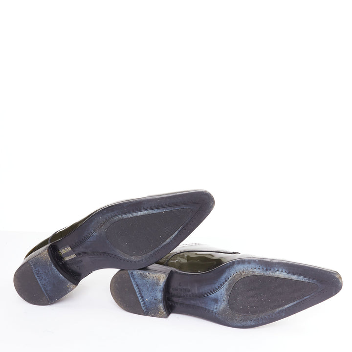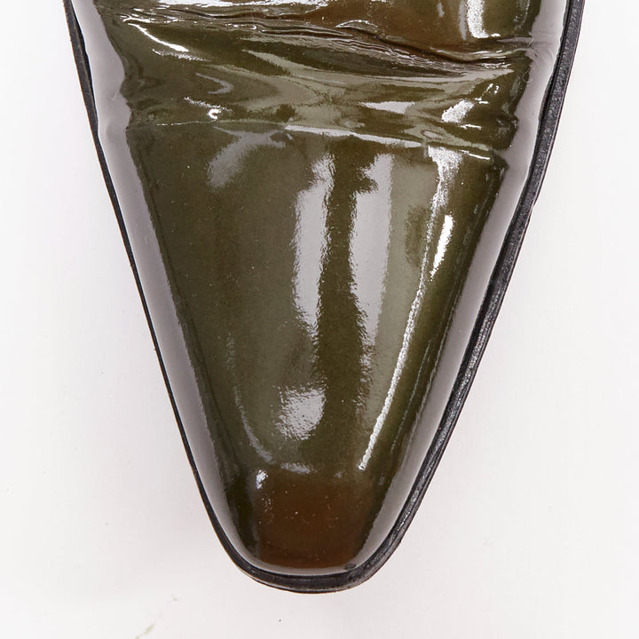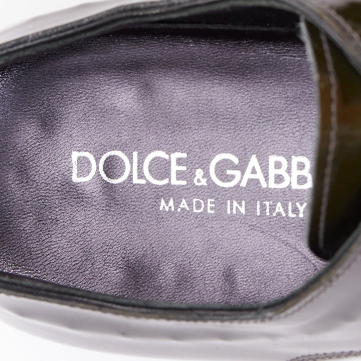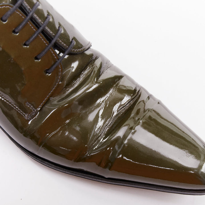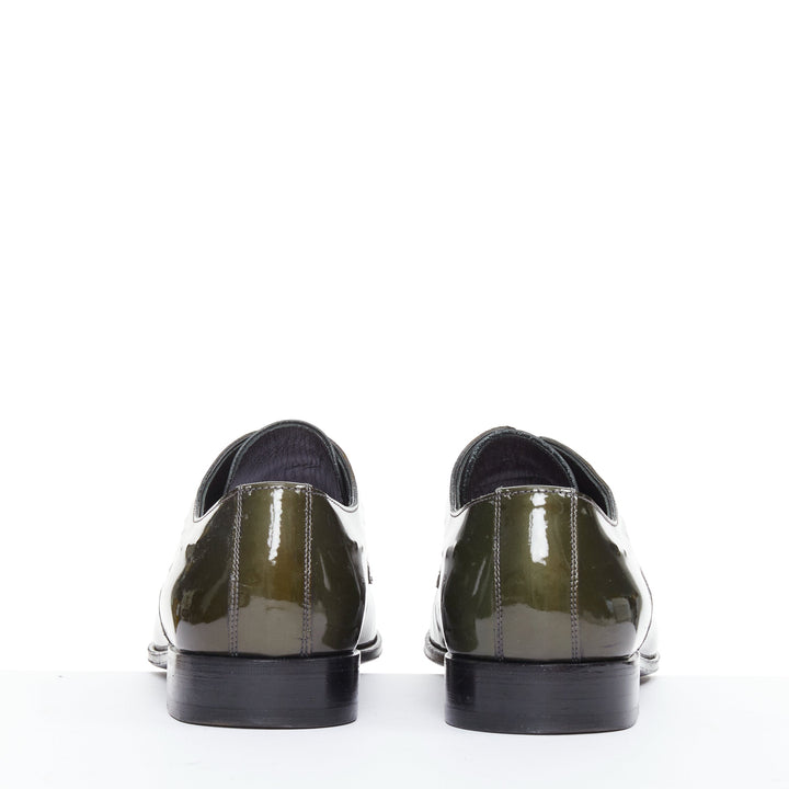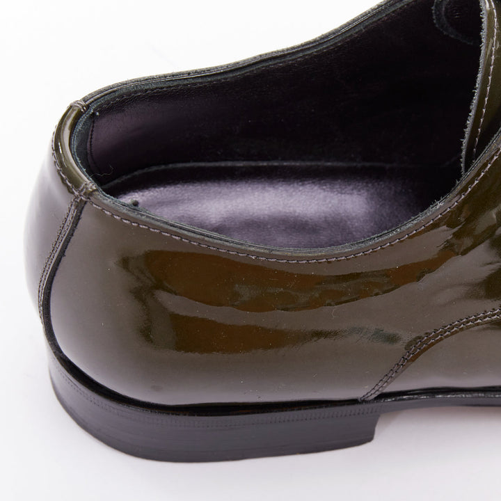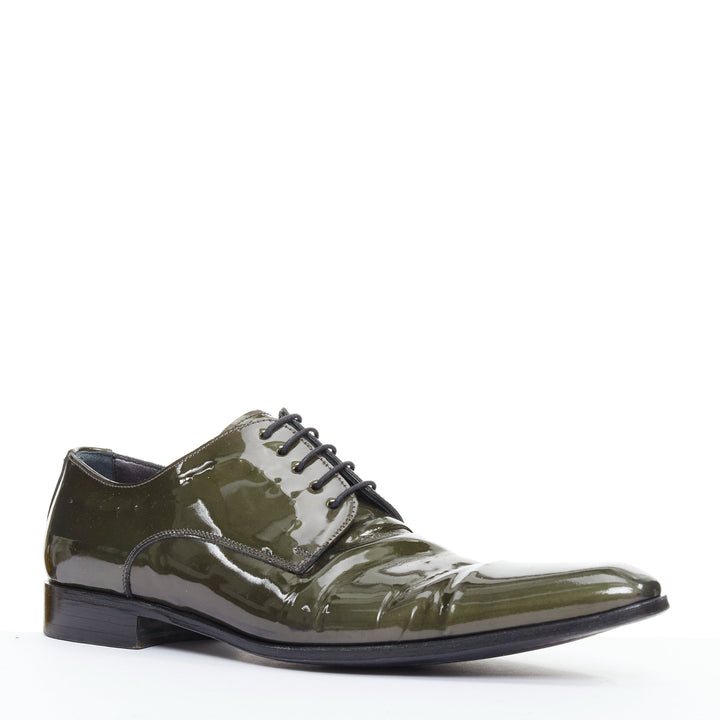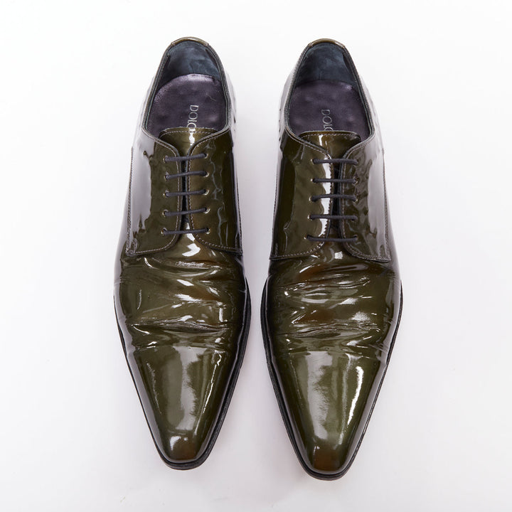 DOLCE GABBANA green patent leather pointy lace up brogue shoes UK7 EU41