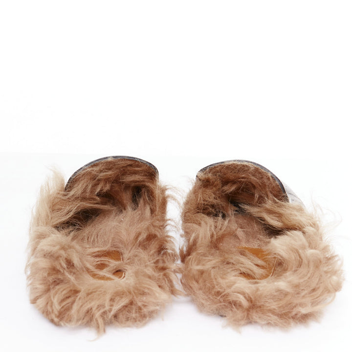 GUCCI Princetown brown fur lined black leather mule loafer EU38