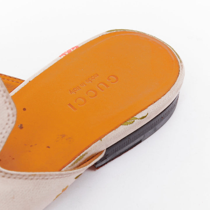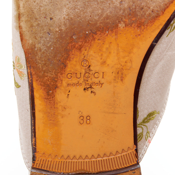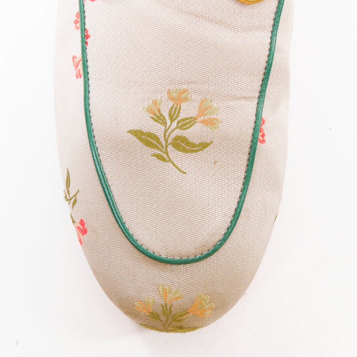GUCCI Princetown grey floral jacquard gold horsebit mule loafer EU38