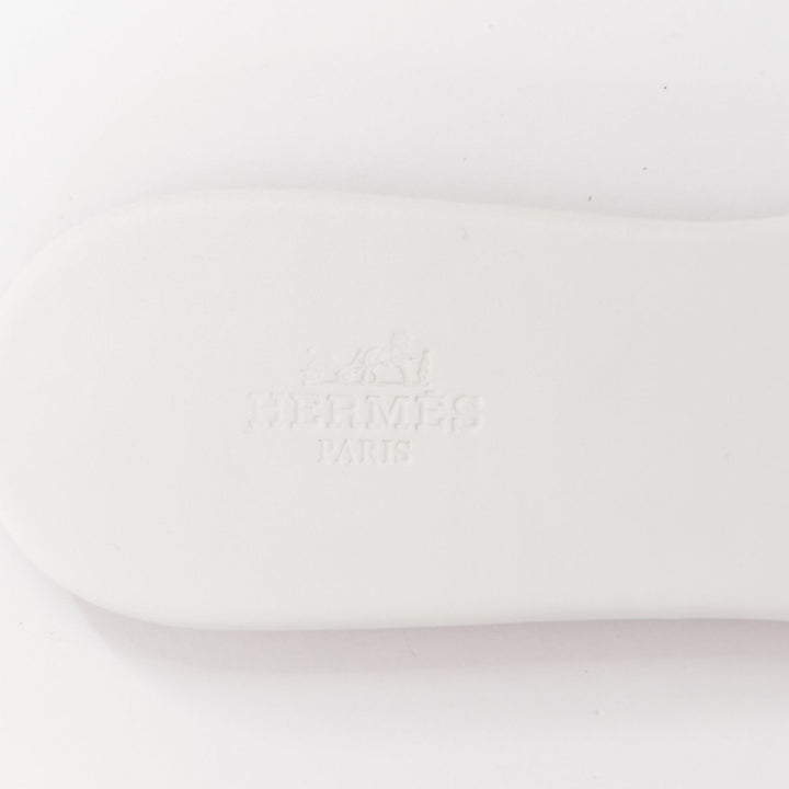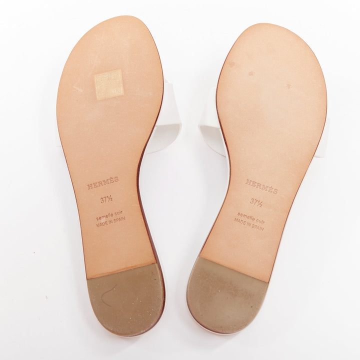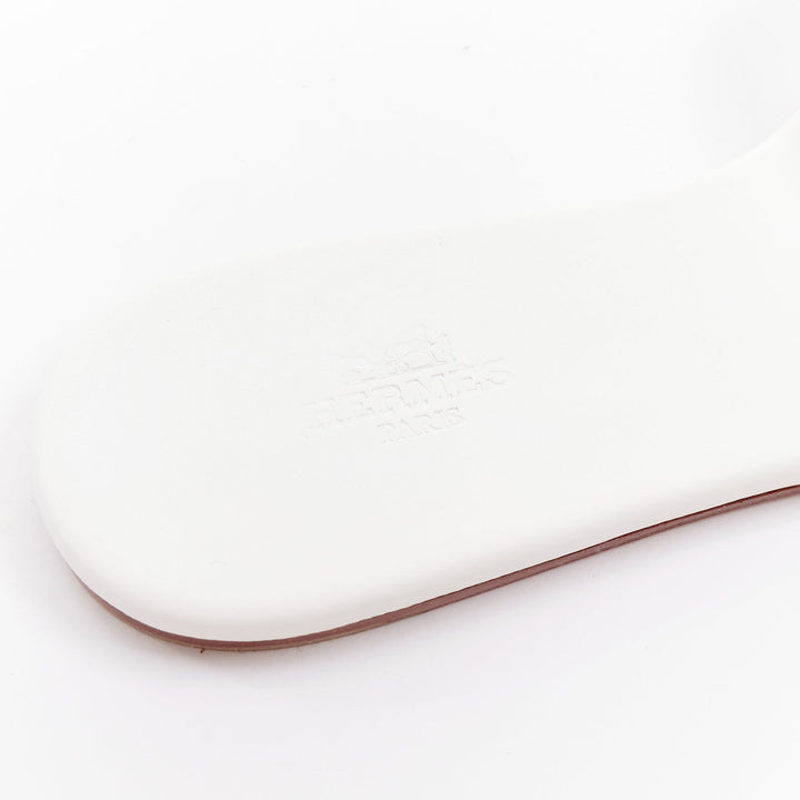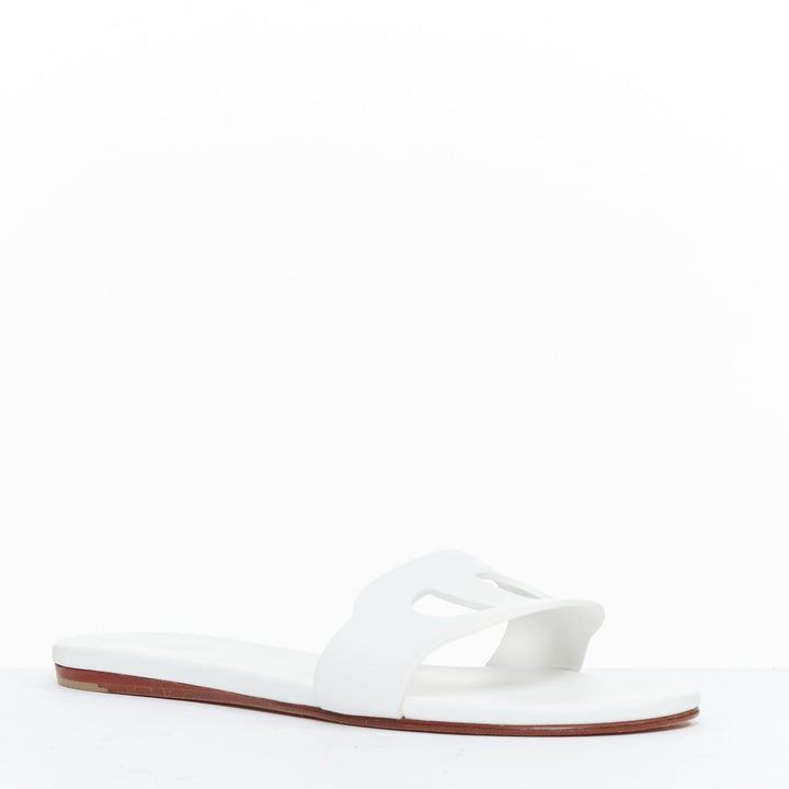 HERMES Lisboa Chaine d’Ancre white leather cut out flat sandal slippers EU37.5