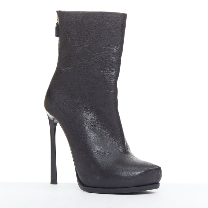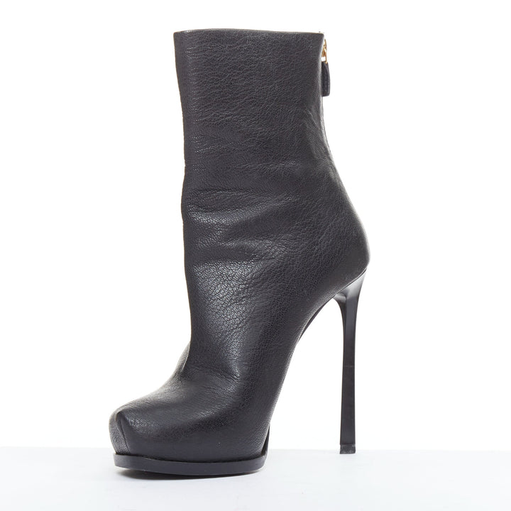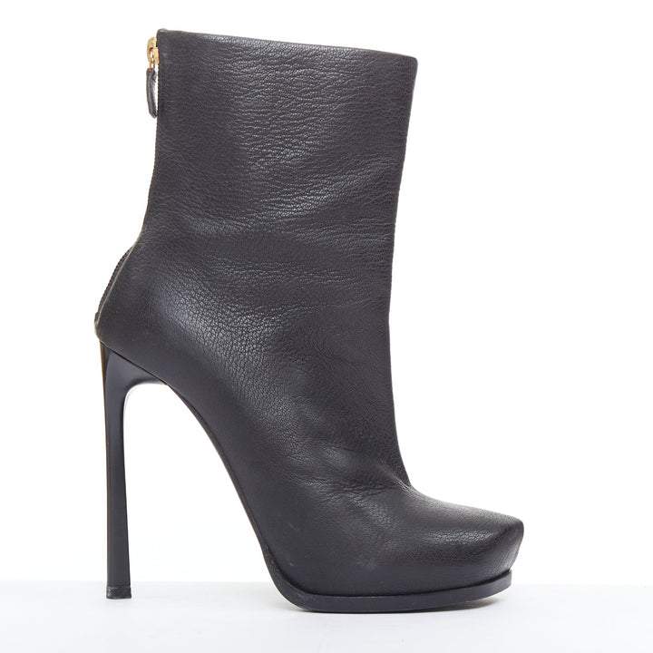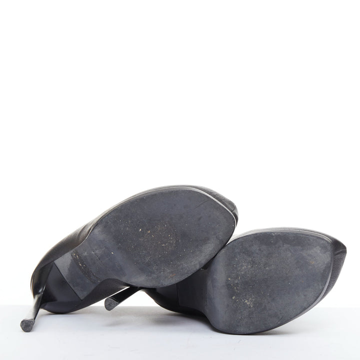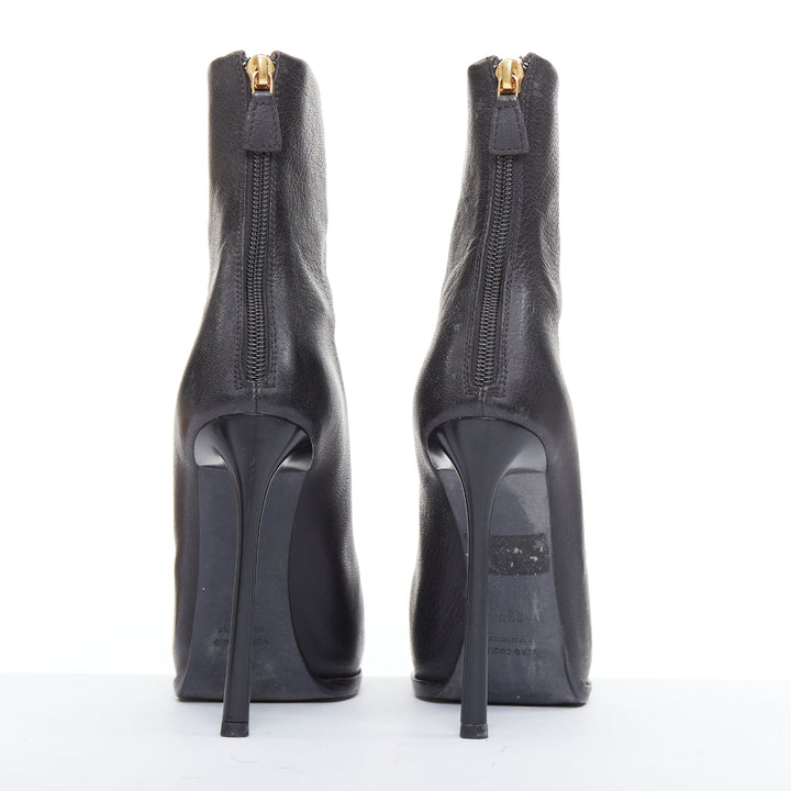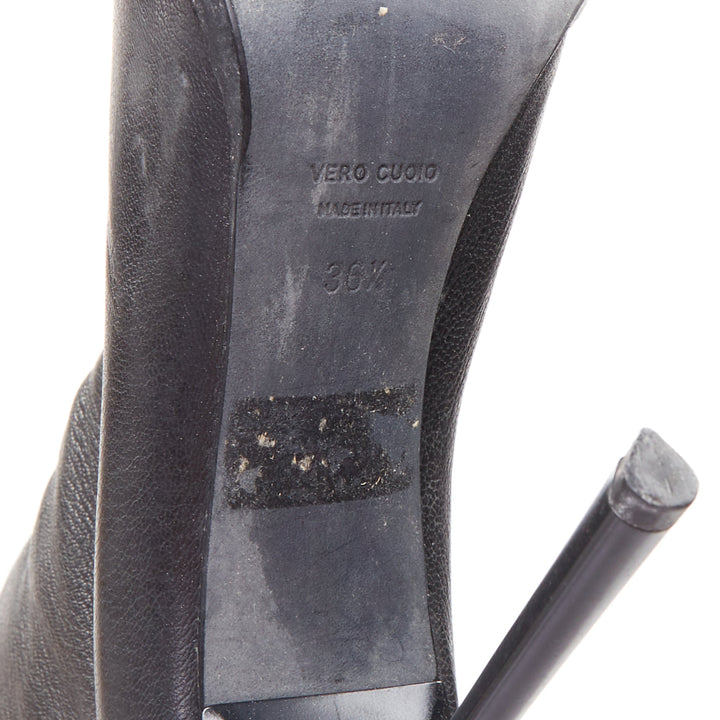 LANVIN AW11 Runway black grained leather sculpted point toe stiletto ankle boots EU36.5