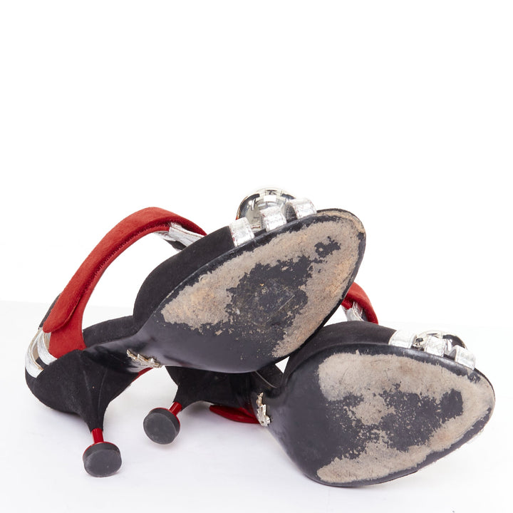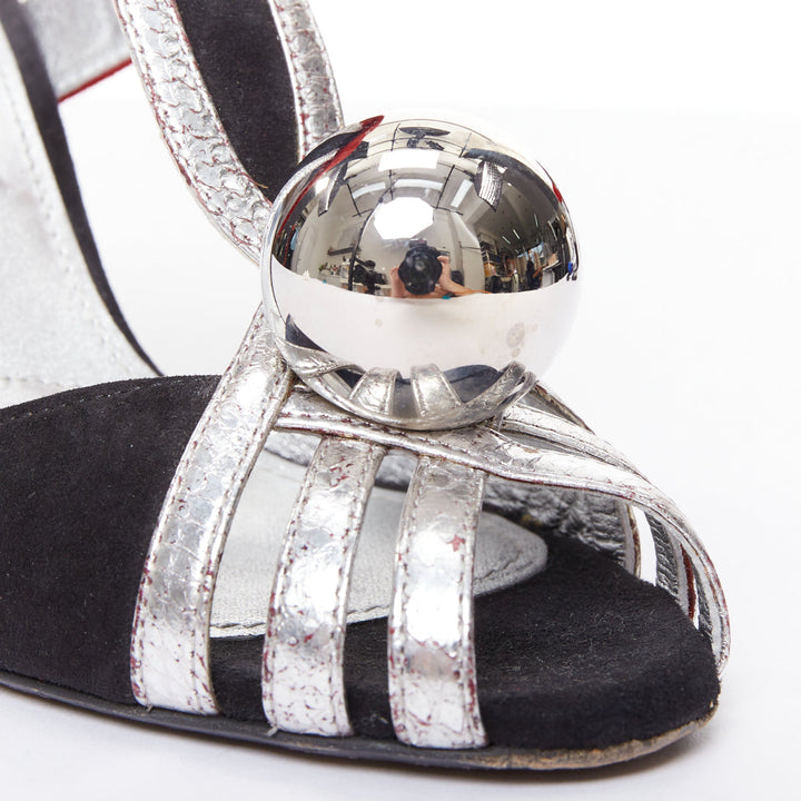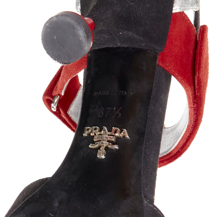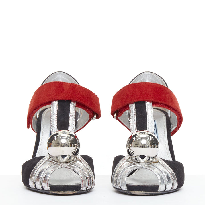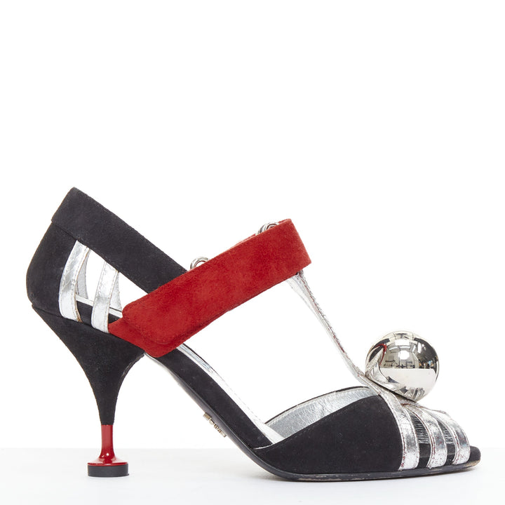 PRADA 2016 Runway mirrored dome ball red black mixed architectural heels EU37.5
