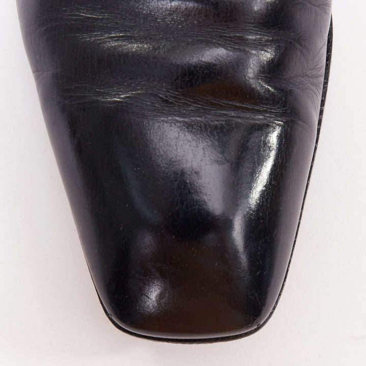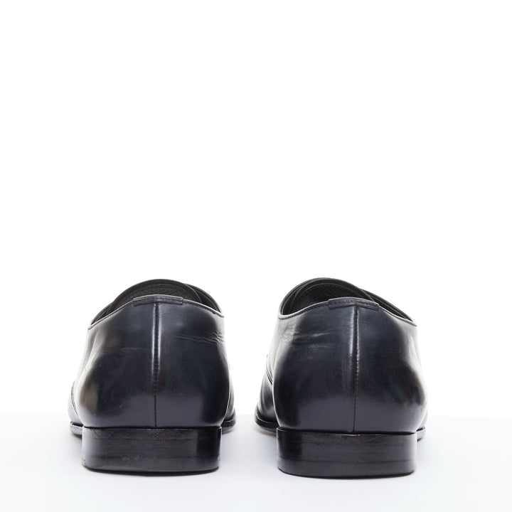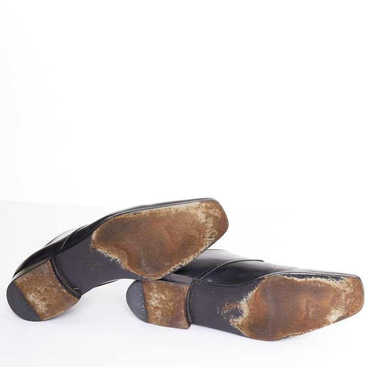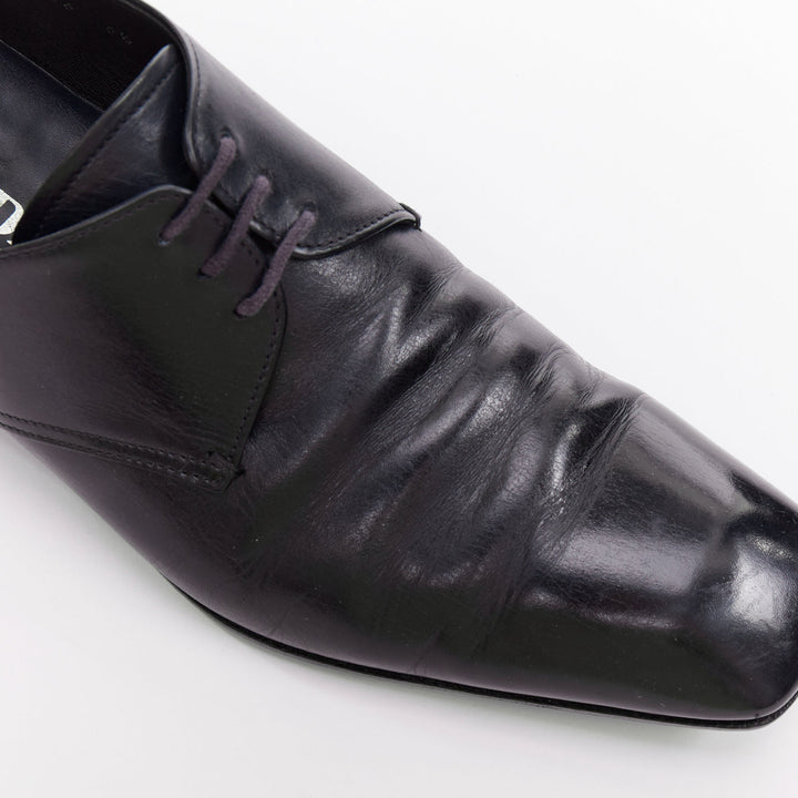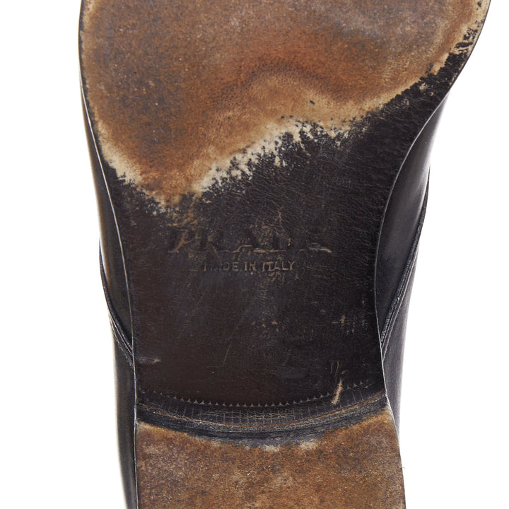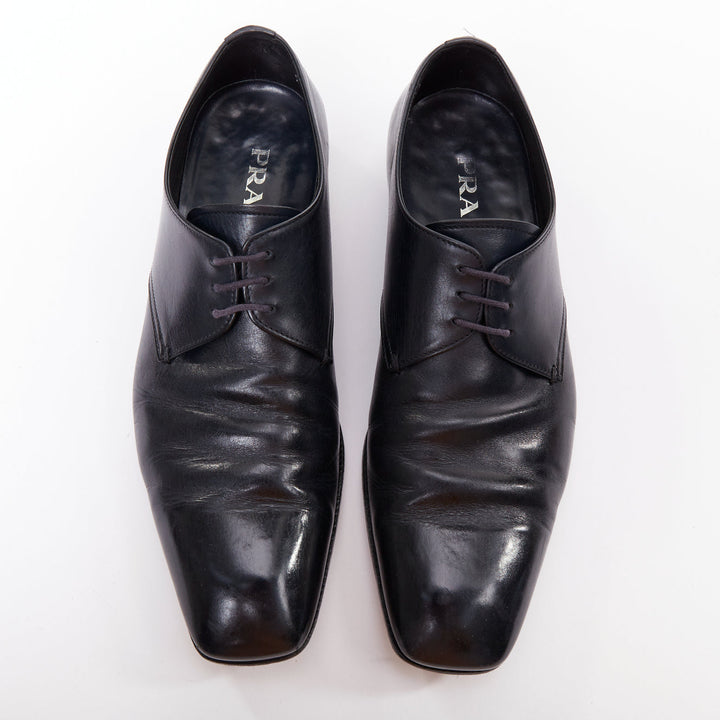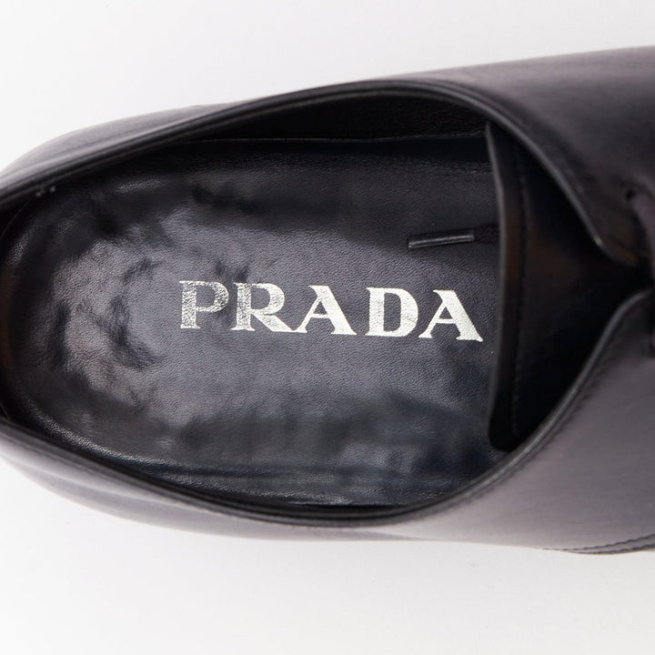 PRADA black leather square toe lace brogue shoes UK6.5 EU40.5