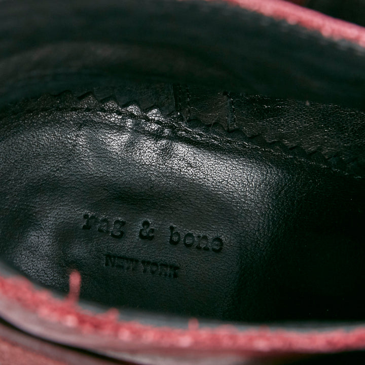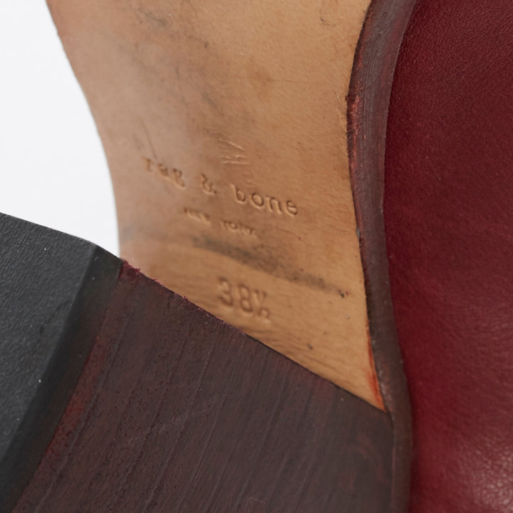 RAG BONE Harrow burgundy red leather stud harness block heel ankle boots EU38.5