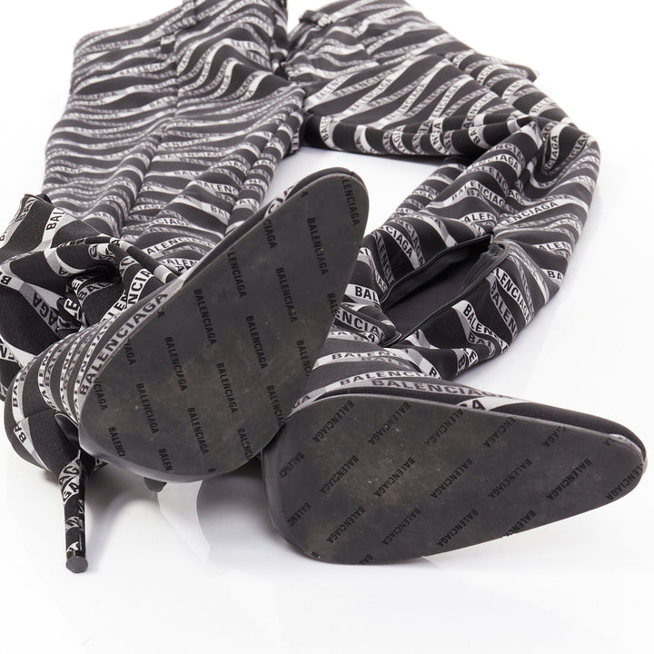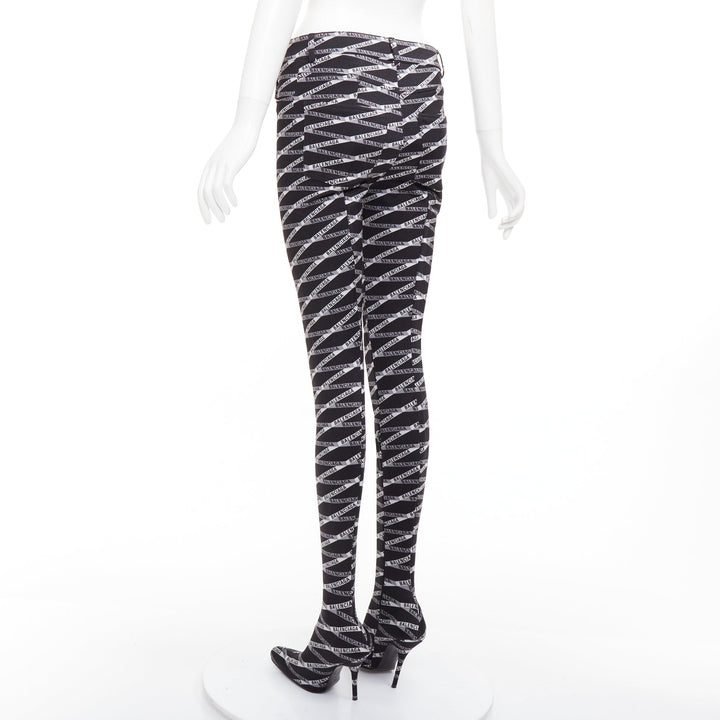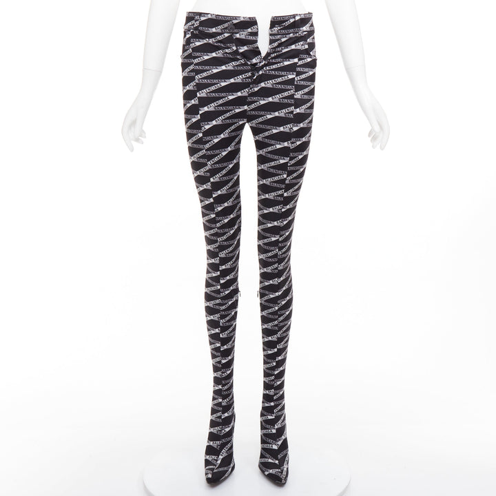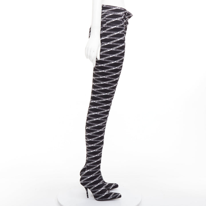 rare BALENCIAGA Runway Demna Pantashoe black logo high heel boots pants IT38 EU37