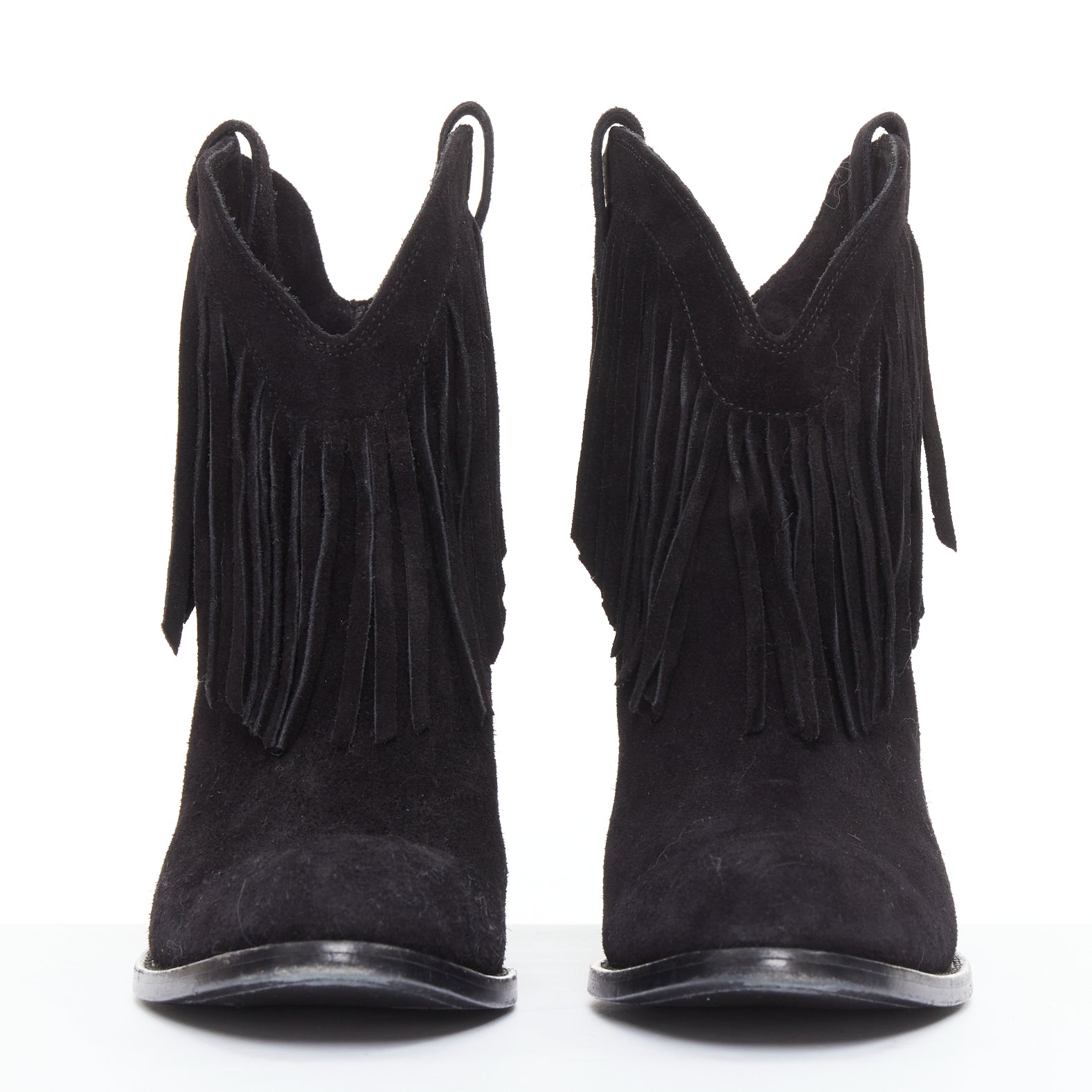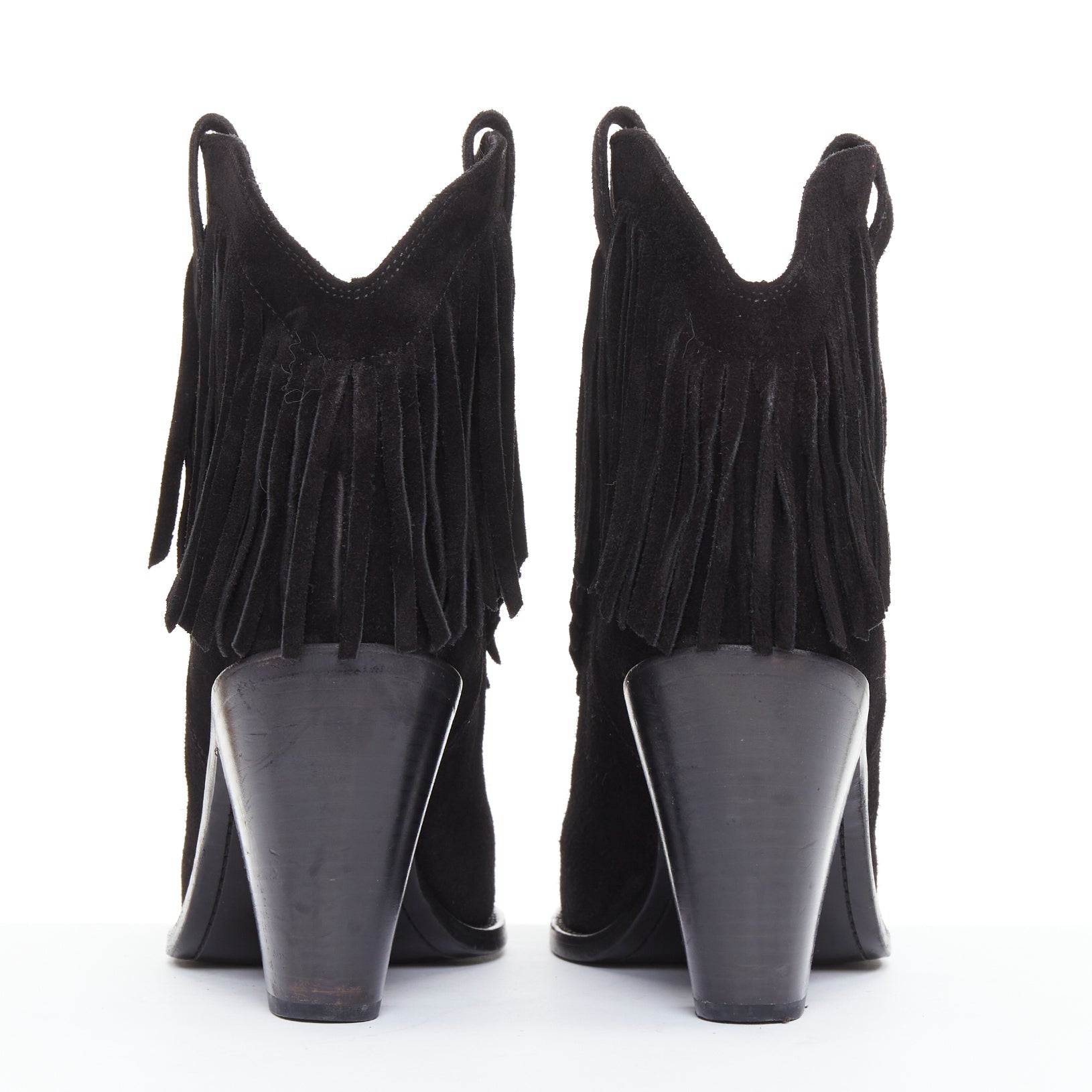 SAINT LAURENT Curtis 80 black suede fringe cuban heel western boots EU39.5