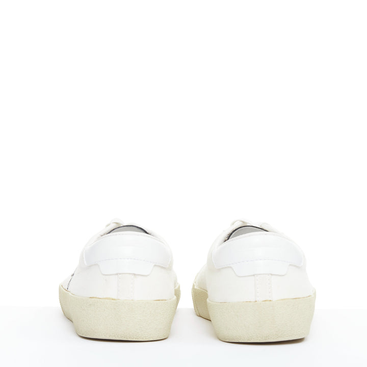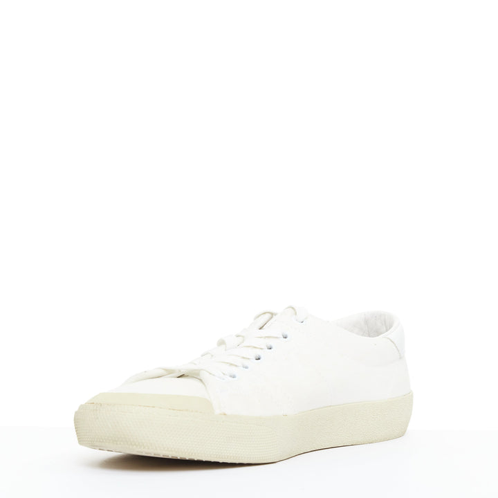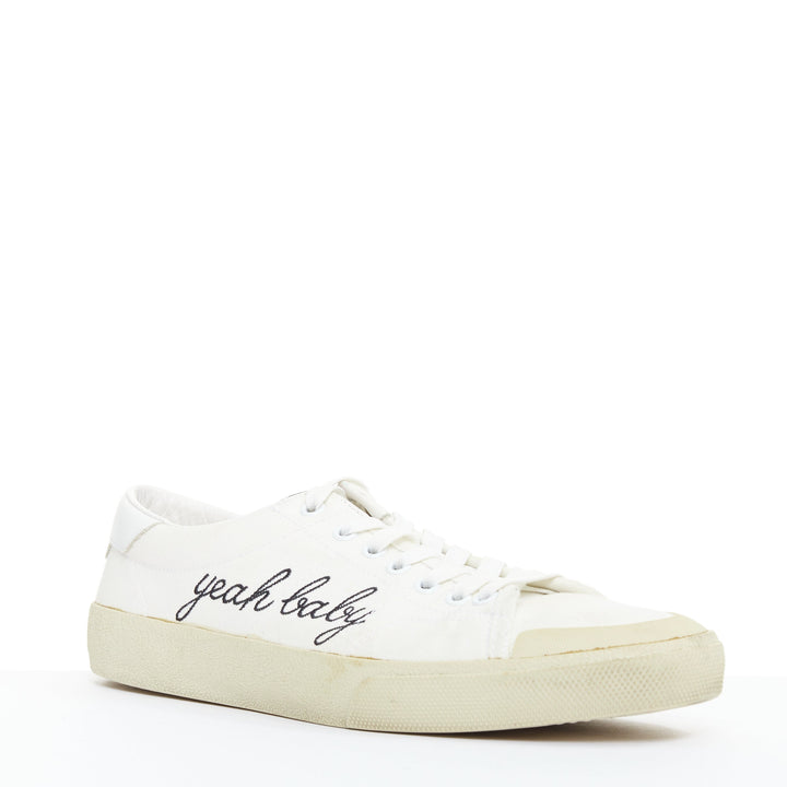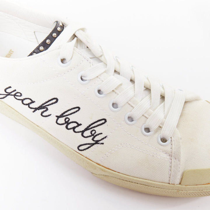SAINT LAURENT SL/06 cream Yeah Baby embroidered canvas court sneakers EU40.5