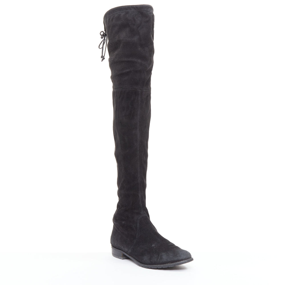 STUART WEITZMAN Lowland black suede drawstring top over knee flat boots EU38