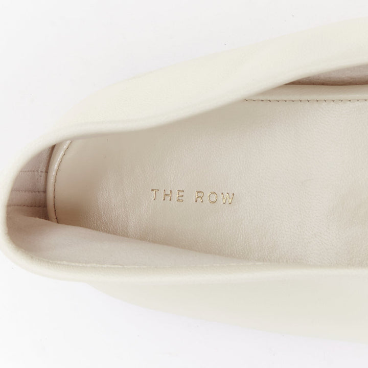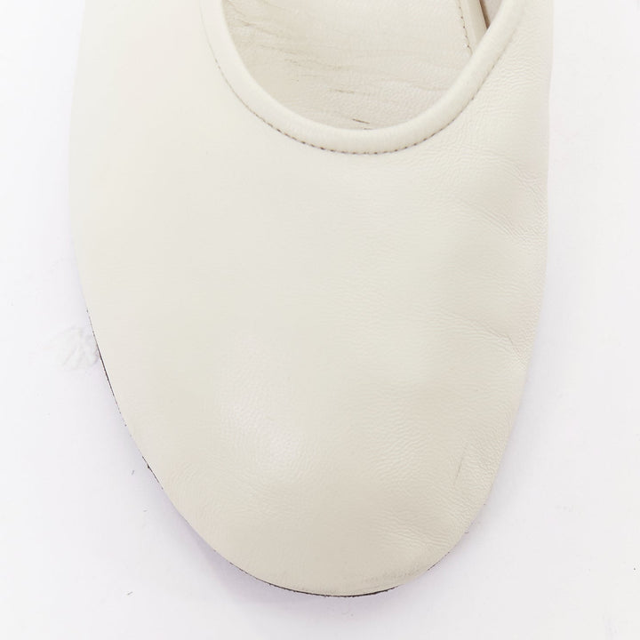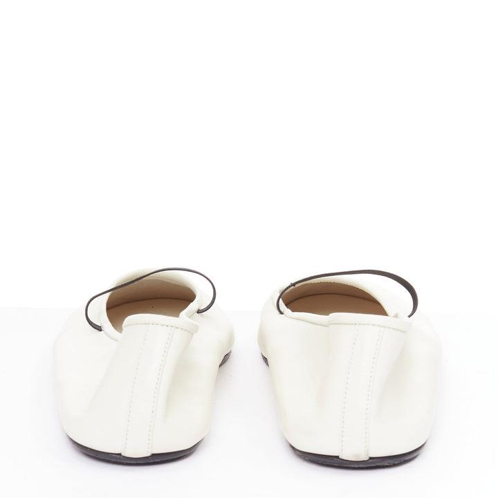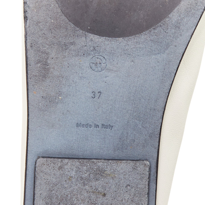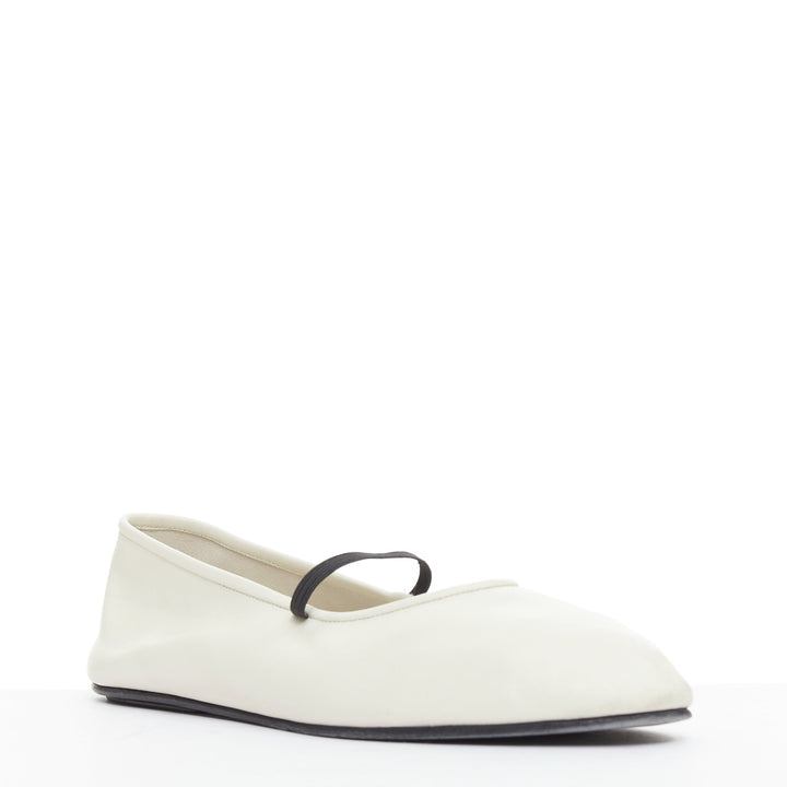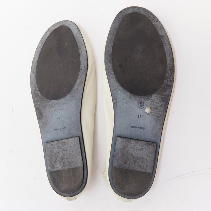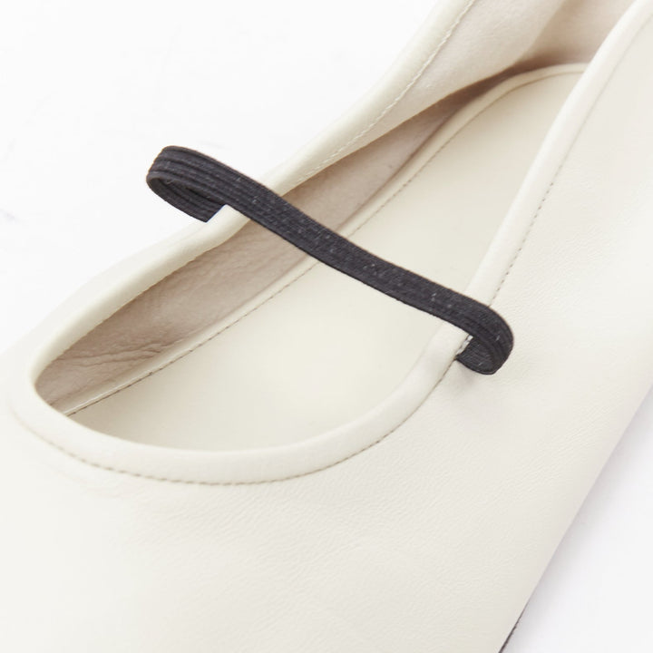 THE ROW off white nappa calfskin leather black elastic ballerina flats EU37