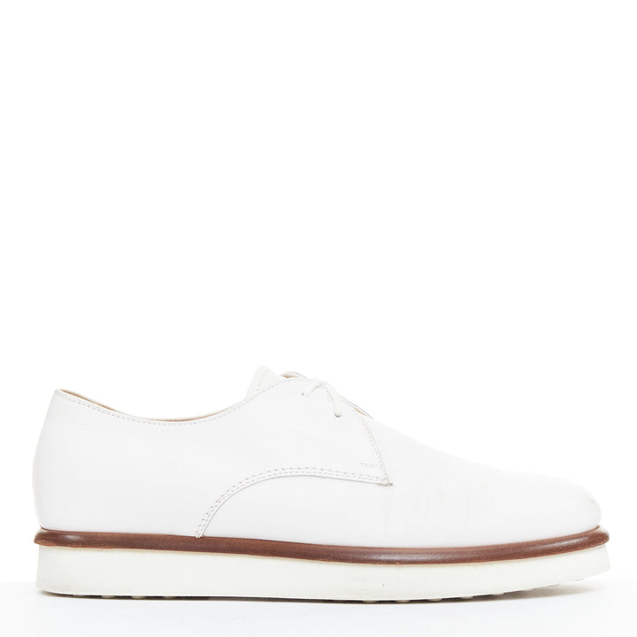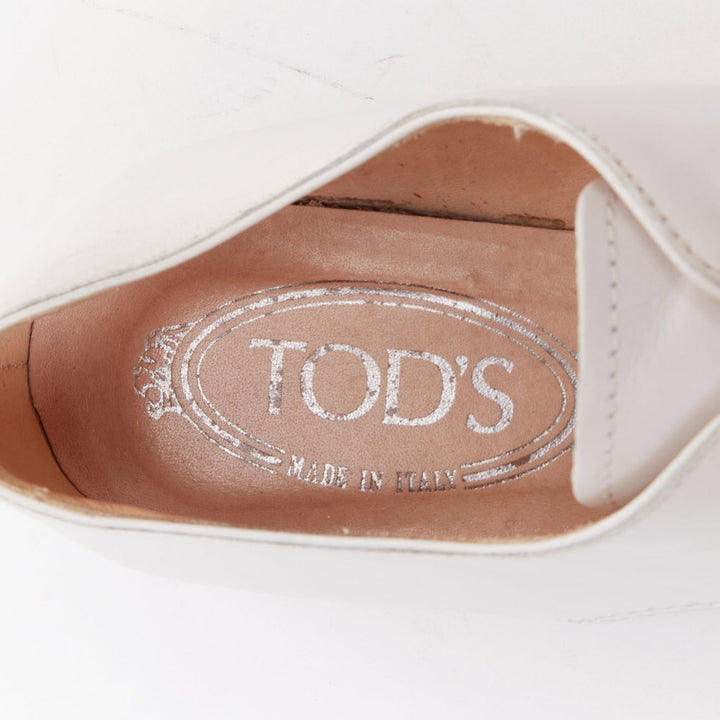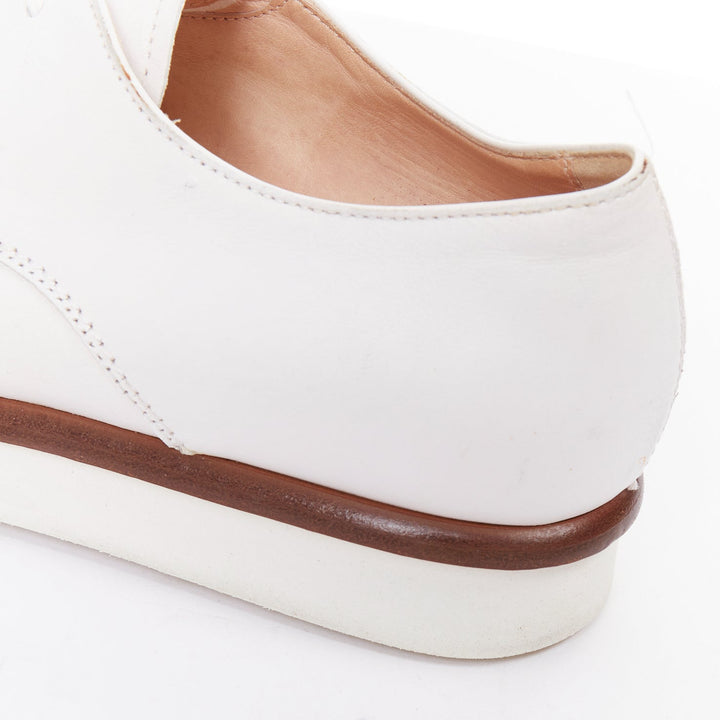 TOD'S 2016 white smooth leather brown midsole lace up platform shoes EU35